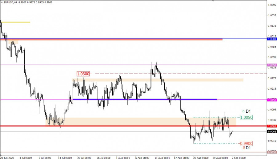Главным событием уходящей недели по праву считается доклад Министерства труда Соединенных Штатов, где его содержание, скорее всего, окажет сильное влияние на рынок и спекулянтов. Прогнозируется, что уровень безработицы должен остаться неизменным, 3,5%, в то время как вне сельского хозяйства может быть создано 300 тыс. новых рабочих мест. Что заметно меньше 528 тыс. чем в предыдущем месяце. Это указывает на потерю динамики восстановления и появление признаков начала ухудшения ситуации на рынке труда. Стоит напомнить, что отчет ADP, опубликованный 31 августа, отразил рост занятости в стране на 132 тыс. Однако прогнозировали повышение показателя на 300 тыс. Отчет ADP часто рассматриваются трейдерами как опережающий индикатор доклада Министерства труда США. Временной таргетинг Индекс цен производителей в Европе – 12:00 по МСК Доклад Министерства труда США – 15:30 по МСК Торговый план – ЕВРО/ДОЛЛАР 2 сентябряСближение цены с нижней границей флета 0.9900 привело к росту объема длинных позиций, как результат на рынке возник отскок. Несмотря на переменный спекулятивный интерес, котировка по-прежнему находится в боковике на основании нисходящего тренда. Тем самым работа может быть выстроена исходя из двух тактик: отскок либо пробой относительно той или иной контрольной границы. Конкретизируем вышесказанное Тактика отскока рассматривается трейдерами как временная стратегия. Тактика пробоя считается основной стратегией, ввиду того что она может указать на последующий ход цены. В случае рассмотрения тактики пробоя наиболее оптимальный подход описан ниже: Восходящий ход по валютной паре принимаются во внимание после удержания цены выше значения 1.0050. Для того чтобы отфильтровать ложные касания, котировке необходимо удержаться выше контрольного значения в дневном периоде. Нисходящий ход будет актуален после удержания цены ниже 0.9890 в дневном периоде. Этот сценарий приведет к пролонгации тренда.