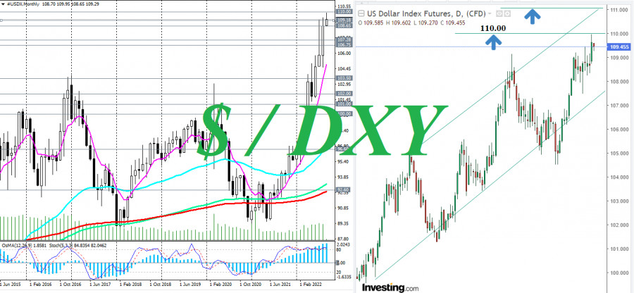 Индекс доллара DXY: очередной рубеж 110.00 почти взят. Что дальше?ИнстаФорекс - Instaforex, 3 года назад Вышедшие вчера весьма позитивные макро данные по США подтолкнули доллар к новым 20-летним максимумам. Во-первых, в своем ежемесячном отчете Институт управления снабжением (ISM) опубликовал (кроме прочих данных) индекс деловой активности PMI в производственном секторе экономики США, который является важным индикатором состояния данного сектора и американской экономики в целом. Индекс PMI для производственной сферы от ISM в августе составил 52,8 (против прогноза 52,0), указав на продолжающийся рост деловой активности (данные выше значения 50 говорят об ускорении активности). Кроме того, входящие в этот отчет ISM «индекс новых заказов составил 51,3%, что на 3,3 процентного пункта выше, чем 48%, зафиксированных в июле, а индекс занятости вырос до 54,2%, что на 4,3 процентного пункта выше показателя 49,9%, зафиксированного в июле». Во-вторых, Министерство труда США сообщило, что еженедельные первичные заявки на пособие по безработице снизились до 232 тысяч (против прогноза 248 тысяч и предыдущего значения 237 тысяч). На этих позитивных данных индекс доллара DXY подскочил вчера к новому 20-летнему максимуму 109.97. Если ожидаемый сегодня в 12:30 (GMT) ежемесячный отчет Минтруда США с данными по основным показателям рынка труда страны за август также оправдает ожидания рынка и выйдет с сильными показателями, то пробой локального уровня сопротивления 110.00 станет для DXY «легкой прогулкой на север». Следующей целью DXY станет локальный уровень сопротивления и очередная «круглая» отметка 111.00. Что касается сегодняшнего отчета Минтруда США (подробнее см. Важнейшие экономические события недели 29.08.2022 – 04.09.2022), то ожидается рост числа занятых в несельскохозяйственном секторе (NFP) на 300 000 в августе (после роста на 528 000 в июле) и уровень безработицы на той же, что и в июле, отметке 3,5%. Показатели говорят о продолжающемся восстановлении американского рынка труда. При этом безработица остается на минимальных уровнях. Вероятно, покупатели доллара увидят новые основания для наращивания длинных позиций по доллару. Кстати, выступавший поздно вечером в среду глава ФРБ Атланты Рафаэль Бостик напомнил о сверхжёсткой политике ФРС, заявив: "Я не думаю, что мы закончили ужесточение. Инфляция остается слишком высокой". Однако, возвращаясь к сегодняшней публикации NFP, стоит все же напомнить, что реакция рынка на него может быть непредсказуема, т.к. часто могут пересматриваться показатели предыдущих ежемесячных отчетов, и не всегда в лучшую сторону. Если же отчет Минтруда окажется разочаровывающим, то коррекции доллара и закрытия части длинных позиций по нему в конце торговой недели не избежать. Хотя, генеральная линия остается пока что прежней – доллар тотально наступает. Его индекс DXY (в торговом терминале МТ4 индекс доллара отражается как CFD #USDX) на момент публикации данной статьи торгуется вблизи отметки 109.34, корректируясь после вчерашнего ралли (подробнее см. в «Индекс доллара #USDX: технический анализ и торговые рекомендации на 02.09.2022»). В случае пробоя краткосрочного уровня поддержки 109.18 снижение может продлиться к уровню поддержки 108.65, и к уровням поддержки 108.00, 107.28, если сегодняшний отчет Минтруда США окажется ну уж очень разочаровывающим. Материал предоставлен компанией InstaForex - www.instaforex.com |