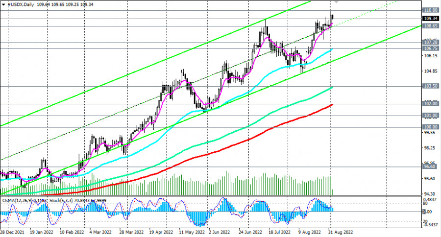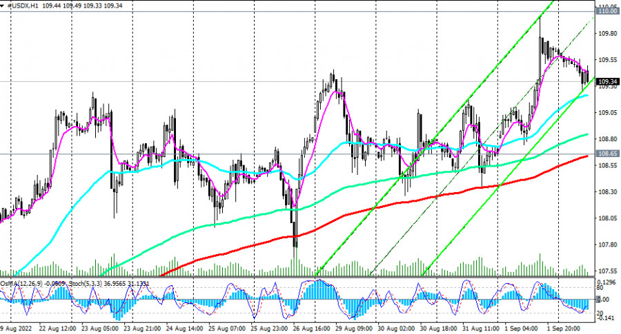 Индекс доллара #USDX: технический анализ и торговые рекомендации на 02.09.2022ИнстаФорекс - Instaforex, 3 года назад На момент публикации данной статьи индекс доллара (CFD #USDX) торгуется вблизи отметки 109.34, снизившись с достигнутого вчера нового локального 20-летнего максимума вблизи отметки 110.00. Как мы отметили в нашем сегодняшнем «Фундаментальном анализе», «если ожидаемый сегодня в 12:30 (GMT) ежемесячный отчет Минтруда США с данными по основным показателям рынка труда страны за август также оправдает ожидания рынка и выйдет с сильными показателями, то пробой локального уровня сопротивления 110.00 станет для DXY «легкой прогулкой на север». Следующей целью DXY станет локальный уровень сопротивления и очередная «круглая» отметка 111.00». В альтернативном сценарии и после пробоя краткосрочного уровня поддержки 109.18 снижение может продлиться к уровню поддержки 108.65 (ЕМА200 на 1-часовом графике). И - к уровням поддержки 108.00, 107.28 (ЕМА200 на 4-часовом графике), если сегодняшний отчет Минтруда США окажется ну уж очень разочаровывающим (подробнее см. Важнейшие экономические события недели 29.08.2022 – 04.09.2022). Снижение в зону ниже уровня поддержки 106.75 (ЕМА50 на дневном графике) маловероятно. Пробой же уровня 110.00 станет подтверждающим сигналом для наращивания длинных позиций по доллару. Уровни поддержки: 109.18, 108.65, 107.28, 106.75, 103.50, 102.00 Уровни сопротивления: 110.00, 111.00