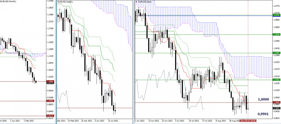 EUR/USD и GBP/USD - итоги недели и перспективыИнстаФорекс - Instaforex, 3 года назад EUR/USD Старшие таймфреймы Прошлая неделя не внесла ясности в предпочтения рынка. Тем не менее, характер сложившейся неопределённости указывает на то, что пробой поддержки минимального экстремума действующей коррекции (0,9901) и возобновление нисходящего тренда достаточно быстро могут вернуть на рынок медвежью результативность. Следующие понижательные ориентиры можно отметить на рубежах 0,9000 (психологический уровень) и 0,8225 (минимальный экстремум 2000 года). Чтобы в сложившихся условиях удержать ситуацию от падения, игрокам на повышение нужно в первую очередь вернуть себе дневной краткосрочный тренд (0,9995) и закрепиться выше психологического уровня (1,0000). Далее их перспективы будут связаны с ликвидацией дневного мёртвого креста Ишимоку (1,0080 – 1,0135 – 1,0190) и тестированием на прочность недельного краткосрочного тренда (1,0182). Н4 – Н1 На младших таймах доминирует неопределённость. Ключевые уровни сейчас служат центром притяжения и удерживают ситуацию от развития. В настоящий момент они расположены в районе 0,9995-70 (центральный Пивот-уровень + недельная долгосрочная тенденция). Работа в непосредственной близости от уровней и их горизонтальное расположение сохраняет сложившуюся неопределённость. Выход за пределы заключительных ориентиров классических Пивот-уровней (1,0175 – 0,9740) позволит рассматривать новые перспективы для движения. *** GBP/USD Старшие таймфреймы Завершившаяся рабочая неделя имела достаточно хороший медвежий результат. Пара, продолжив снижение, приблизилась к следующему важному ориентиру 1,1411 (минимальный экстремум 2020 года). Результат взаимодействия с данным уровнем будет определять дальнейшие перспективы. В случае зарождения восходящей коррекции, значение, при восстановлении позиций игроками на повышение, в первую очередь будут иметь 1,1698 (дневной краткосрочный тренд) и 1,1759 (уровень предыдущего минимального экстремума). Н4 – Н1 Развивая нисходящий тренд старших временных интервалов, игроки на понижение сейчас обладают основным преимуществом на младших таймах. Ориентирами для снижения внутри дня служат поддержки классических Пивот-уровней (1,1486 – 1,1431 – 1,1364). Изменить действующий баланс сил на младших временных интервалах можно посредством преодоления сопротивлений классических Пивот-уровней, которые в момент анализа можно отметить на 1,1553 (центральный Пивот-уровень) и 1,1630 (недельная долгосрочная тенденция). *** При техническом анализе ситуации используются: старшие таймфреймы – Ichimoku Kinko Hyo (9.26.52) + уровни Фибо Киджун Н1 – Pivot Points (классические) + Moving Avarage 120 (недельная долгосрочная тенденция) Материал предоставлен компанией InstaForex - www.instaforex.com |