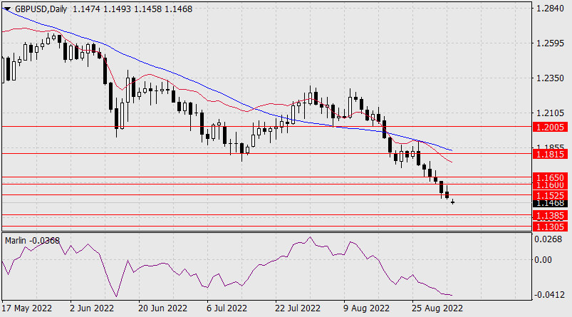 Прогноз по GBP/USD на 5 сентября 2022 годаИнстаФорекс - Instaforex, 3 года назад Пятничный день фунт стерлингов закрыл под целевым уровнем 1.1525, сегодняшний день открылся с понижающимся разрывом. Цель 1.1385 открыта, и после закрытия гэпа ждём снижение цены до указанной цели. Второй целью рынка может стать целевой уровень 1.1305, что чуть ниже марта 2020 года.