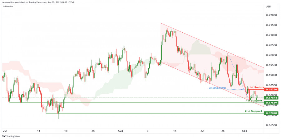 AUD/USD на 5 сентября 2022: вероятность роста валютной парыИнстаФорекс - Instaforex, 3 года назад На 4-часовом графике цена движется ниже облака Ишимоку внутри нисходящего канала. Предполагая дальнейшее нисходящее движение, цена может опуститься от 1-ой поддержки на уровне 0.67619, от которого цена отскакивала несколько раз, до 2-ой поддержки на уровне 0.67098, где расположены минимумы. Альтернативный сценарий: цена может подняться до 1-ого сопротивления на уровне 0.68286, что соответствует откату Фибоначчи 23.6%. Рекомендации по торговле Вход в сделку: 0.67619 Причина для открытия сделки: множество отскоков от минимумов Take profit: 0.67098 Причина Take Profit: разворотные минимумы Stop Loss: 0.68286 Причина Stop Loss: откат Фибоначчи 23.6% Материал предоставлен компанией InstaForex - www.instaforex.com |