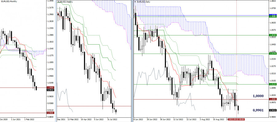 EUR/USD и GBP/USD 5 сентября – рекомендации технического анализаИнстаФорекс - Instaforex, 3 года назад EUR/USD Старшие таймфреймы С открытием торгов игроки на понижение продолжили снижение, обновив минимум 0,9901. Если удастся закрепиться и восстановить нисходящий тренд, то ориентирами для снижения можно рассматривать уровни 0,9000 (психологический уровень) и 0,8225 (минимальный экстремум 2000 года). Если же медведи сейчас не сумеют удержаться ниже 0,9901 и вернутся в зону консолидации, то после обретения рубежей 0,9984 (дневной краткосрочный тренд) и 1,0000 (психологический уровень) можно ожидать, что игроки на повышение постараются выйти за пределы сложившейся зоны неопределённости и развить полноценное коррекционное движение. Задачами дальнейшего подъёма будут являться ликвидация дневного мёртвого креста (1,0066 – 1,0124 – 1,0181) и обретение поддержки от недельного краткосрочного тренда (1,0124). Н4 – Н1 В силу того что рынок сейчас работает ниже ключевых уровней, на младших таймфреймах можно отметить основное преимущество на стороне игроков на понижение. К настоящему моменту протестирована поддержка S2 (0,9886), ориентиром осталась поддержка S3 (0,9830). Ключевые уровни сегодня объединяют свои усилия в районе 0,9993-77 (центральный Пивот-уровень + недельная долгосрочная тенденция). Закрепление выше изменит действующий баланс сил, вернув преимущество на сторону игроков на повышение. Повышательные ориентиры внутри дня сейчас расположены на 1,0012 – 1,0068 – 1,0103. *** GBP/USD Старшие таймфреймы Игроки на понижение начали новую рабочую неделю с обновления минимума (1,1495) и снижения в зону притяжения и влияния исторической поддержки 1,1411. Определять перспективы для дальнейшего развития событий в сложившейся ситуации скорей всего будет сформированный результат взаимодействия с уровнем 1,1411. Н4 – Н1 На младших таймах преимущество на стороне игроков на понижение. Протестированы две из трёх поддержек классических Пивот-уровней (1,1471 – 1,1437), в запасе для снижения осталась S3 (1,1378). Ближайшим ориентиром для текущей восходящей коррекции является центральный Пивот-уровень (1,1530), далее промежуточное сопротивление можно отметить на 1,1564 (R1), но ключевое значение принадлежит сопротивлению недельной долгосрочной тенденции (1,1607). *** При техническом анализе ситуации используются: старшие таймфреймы – Ichimoku Kinko Hyo (9.26.52) + уровни Фибо Киджун Н1 – Pivot Points (классические) + Moving Avarage 120 (недельная долгосрочная тенденция) Материал предоставлен компанией InstaForex - www.instaforex.com |