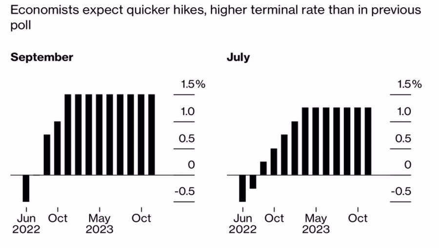 Евро рухнул как карточный домикИнстаФорекс - Instaforex, 3 года назад Если кто-то считает работу ФРС трудной, посмотрите на ЕЦБ. Он оказался действительно в незавидном положении. Отказ России поставлять газ по трубопроводу Северный поток обернулся 35%-м ростом котировок фьючерсов на голубое топливо и обвалом EURUSD к 20-летниму дну. У явно недовольного этим центробанка связаны руки, ведь начни он резко повышать ставки, рецессии не избежать. Если же вместо решительности использовать постепенность, евро продолжит лететь в пропасть, цены на импорт расти как на дрожжах, а инфляция, наверняка, начнет измеряться двузначными цифрами. Отчет о состоянии рынка труда США за август показал, что ФРС эффективно делает свою работу. Занятость увеличилась на 315 тыс, что стало худшей динамикой показателя за 16 месяцев. Безработица выросла с 3,5% до 3,7%, а средняя заработная плата, напротив, замедлилась с 5,6% до 5,2%. Очень горячий рынок продемонстрировал первые признаки охлаждения, что и требуется Федрезерву, чтобы победить инфляцию. Борьба будет трудной, однако ухудшение состояния рынка труда вкупе с замедлением потребительских цен – верный знак, что повышать ставки по федеральным фондам на 75 б.п в сентябре не требуется. Зачем перегибать палку? Если так, то доллар США должен сделать шаг назад. На первый взгляд, евро в состоянии оказать достойное сопротивление «американцу». Эксперты Bloomberg прогнозируют, что ставка по депозитам вырастет на 75 б.п на заседании 8 сентября и поднимется выше, чем респонденты ожидали в июле – до 1,5%. Срочный рынок и вовсе рассчитывает ее увидеть чуть ли не на уровне 2,5%. В таких условиях должна расти доходность европейский облигаций, то бишь их привлекательность. За счет перелива капитала в Европу должен укрепляться евро. Прогнозы по ставке по депозитам ЕЦБ Не тут-то было! Из-за нежелания России возобновить работу Северного потока стройный план рухнул как карточный домик. Цены на газ взлетели на 35%, ЕС думает как их ограничить их рост, а Германия добавляет пакет фискальной помощи в €65 млрд для пострадавших от энергетического кризиса. Увы, но ING считает, что стимулов будет недостаточно, чтобы избежать рецессии, а прямое ограничение стоимости голубого топливо и приостановка торговли фьючерсами выглядят неэффективно. Долго ли смогут продержаться административные меры против рынка? Несмотря на то, что заполняемость европейских хранилищ растет быстрее, чем предполагалось, если Россия не возобновит работу Северного потока, запасов хватит на 2-2,5 месяца. Дальше будет совсем плохо. И это обстоятельство дает возможность Goldman Sachs прогнозировать падение EURUSD к 0,95. RBC Bluebay Asset Management считает, что уровень будет достигнут в ближайшее время. Технически на дневном графике EURUSD лишь возвращение пары к нижней границе диапазона справедливой стоимости 1-1,037 с последующей активацией паттерна Обман-выброс позволит говорить о покупках. Пока этого не произошло, имеет смысл продавать пару с таргетом на 161,8% по паттерну AB=CD. Материал предоставлен компанией InstaForex - www.instaforex.com |