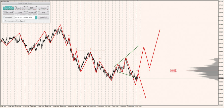 Долгосрочная тенденция: временная неопределенность. Максимальное скопление объемов текущего контракта расположено в диапазоне, по котировкам 0.62208-0.62494. В настоящий момент по паре совершаются инвестиционные операции ниже, указывая на силу продавцов.