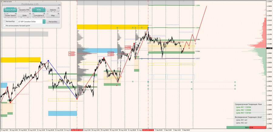 Среднесрочная тенденция: в лонг. Максимальное скопление объемов среднесрочной тенденции расположено в диапазоне по котировкам 1.30890-1.3100. В настоящий момент по паре совершаются инвестиционные операции выше, указывая на силу покупателей. Объемы последнего шортового импульса по котировкам 1.31172-1.31262, и в настоящий момент пара торгуется выше, указывая на силу покупателей.