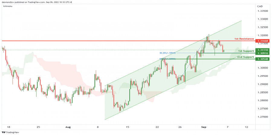 USD/CAD: вероятность восходящего хода 6 сентября 2022ИнстаФорекс - Instaforex, 3 года назад На 4-часовом графике видно, что цена движется внутри восходящего канала выше облака Ишимоку. Мы предполагаем, что цена может подняться от 1-ой поддержки на уровне 1.31069, где находится откат Фибоначчи 38.2%, до 1-ого сопротивления на уровне 1.31668, где расположен разворотный максимум. Альтернативный сценарий: цена может опуститься до 2-ой поддержки на уровне 1.30545, где находятся откат Фибоначчи 50% и предыдущий разворотный максимум. Рекомендации по торговле Вход в сделку: 1.31069 Причина входа в рынок: откат Фибоначчи 38.2% Take Profit: 1.31668 Причина срабатывания take profit: разворотный максимум Stop Loss: 1.30545 Причина срабатывания stop loss: откат Фибоначчи 50% и предыдущий разворотный максимум Материал предоставлен компанией InstaForex - www.instaforex.com |
