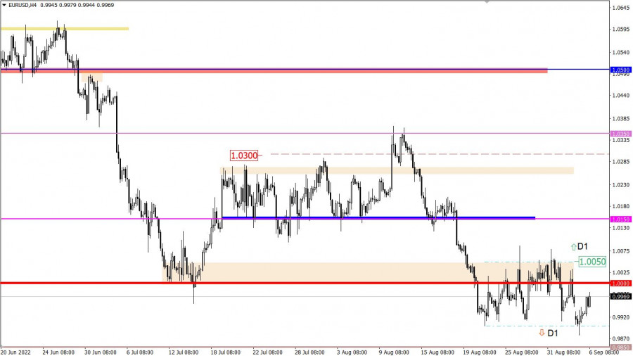 Детали экономического календаря от 5 сентябряВчера были опубликованы итоговые данные по индексам деловой активности в секторе услуг Европы и Великобритании которые вышли хуже ожиданий. Детали статистических показателей: В Европе индекс деловой активности в сфере услуг снизился с 51,2 до 49,8 пункта, при ожидании 50,2 пункта. Композитный индекс снизился с 49,9 до 48,2 пункта. Евро во время выхода данных уже было сильно перепродано, поэтому падать дальше было затруднительно. В Великобритании индекс деловой активности в сфере услуг, снизился с 52,6 до 50,9 пункта, ожидали его снижение до 52,5 пункта. Композитный индекс снизился с 52,1 до 49,6 пункта. Фунт стерлингов, как и евро был перепродан, реакция на статистические данные отсутствовала. В Европе также были опубликованы данные по розничным продажам темп спад которых замедлился с -3,2% до -0,9% (г/г). Несмотря на то, что данные вышли хуже прогноза (-0,7%), евро их игнорировал. Причина отсутствия реакции на статистические показатели возникла за счет товарного рынка. Вчера с открытием торгов возник резкий рост стоимости на газ в Европе, который подскочил на 30%, до $2800 за тысячу кубов. Причина роста стоимости газа кроется в сообщение Газпрома вечером в пятницу, что техническое обслуживание единственной рабочей турбины СП-1 выявило «грубейшие нарушения», и что газопровод не будет работать без их устранения. Спекулянты отработали этот информационный поток в виде распродажи евро, где через положительную корреляцию потянулся вслед за евро и фунт стерлингов. Как только стоимость газа стала восстанавливаться относительно утреннего скачка, евро перешло к укреплению, за ним потянулся фунт. Разбор торговых графиков от 5 сентябряВалютная пара EURUSD новую торговую неделю открыла с интенсивного снижения, в ходе которого котировка на время оказалась ниже отметки 0.9900. Удержаться за пределами контрольного значения спекулянтам так и не удалось, вследствие чего возник технический откат. Валютная пара GBPUSD через положительную корреляцию с EURUSD вначале устремились вниз, практически достигнув минимума 2020 года, а после перешла в стадию отката. Экономический календарь на 6 сентябряСегодня Соединенные Штаты выходят с трехдневных выходных и будут опубликованы данные по индексу деловой активности в секторе услуг. По Великобритании ожидают публикацию данных по индексу деловой активности в строительном секторе, где прогнозируют его снижение. Не лучший сигнал для фунта стерлингов, но стоит учесть, что он уже перепродан на рынке. Временной таргетинг Индекс деловой активности в строительном секторе (авг) в Великобритании – 11:30 по МСК Индекс деловой активности в секторе услуг (авг) в США – 16:45 по МСК Торговый план – ЕВРО/ДОЛЛАР 6 сентябряНесмотря на спекулятивную активность котировка по-прежнему находится в рамках боковой амплитуды 0.9900/1.0050. Тем самым трейдеры ориентируются границы флета, работая по методу пробой или отскок от заданных значений.
