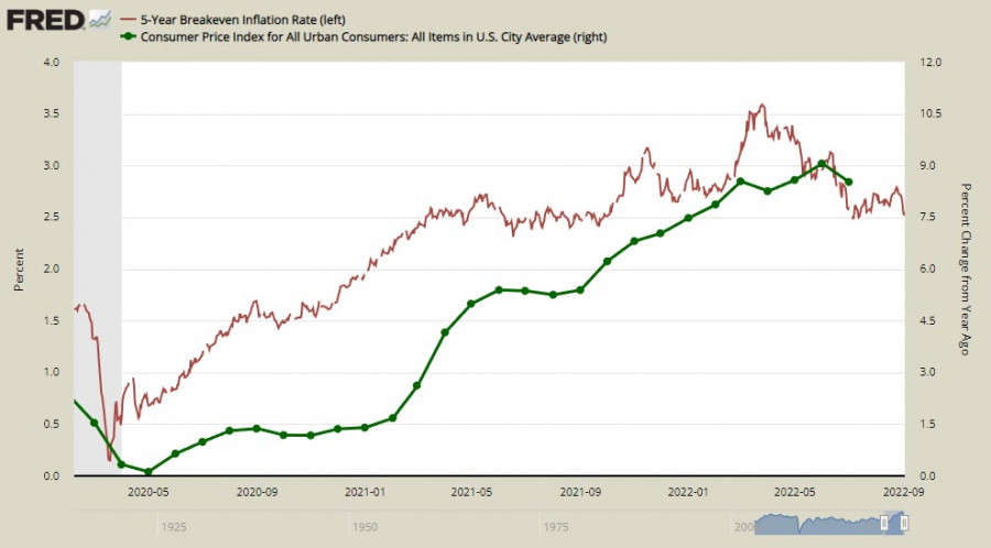 Борьба с высокой инфляцией грозит затянуться. Обзор AUD, NZD, USDИнстаФорекс - Instaforex, 3 года назад Борьба с инфляцией остается главной целью центробанков, которые готовы продолжать подавление роста цен даже перед угрозой экономического спада. Большинство исследований приходит к выводу, что горизонт высокой инфляции простирается в будущее примерно на 2 года, то есть ожидать нормализации цен и возврата инфляции к уровню 2% в большинстве валютных зон можно не ранее лета 2024 г. Доходность 5-летних защищенных от инфляции облигаций TIPS снизилась до 2.52%, то есть бизнес не ожидает снижения инфляции до нормального уровня в 2% в 5-летней перспективе, эти ожидания отражают неуверенность бизнеса в том, что политика ФРС окажется успешной. Энергетический кризис набирает обороты. Европейские цены на газ на бирже Нидерландов подскочили на 30% на открытии в понедельник после подтверждения того, что остановка газопровода Nordsteam1 затянется на неопределенный срок, ОПЕК+ отменяет августовское решение об увеличении добычи на 100 тыс. баррелей в сутки, а переговоры по иранской ядерной программе зашли в тупик. Остановка предприятий в случае, если дефицит энергоносителей будет нарастать, приведет к новой волне бегства капиталов из Европы. Доходность облигаций европейских стран растет быстрее, чем доходности UST, что может указывать на растущие подозрения в том, что ЕЦБ на заседании в четверг окажется еще более агрессивным, чем в самых смелых прогнозах. Тактика центробанков прослеживается довольно отчетливо – снизить потребление как главный фактор роста цен. В то же время рост цен на энергию приведет к остановке многих предприятий, что, в свою очередь, снизит и предложение, что будет балансировать спрос и предложение в условиях высоких цен на энергоносители. Уверенности в том, что ситуацию с ростом цен центробанки удержат под контролем, по-прежнему нет. NZDUSD Для новозеландского доллара прошедшая неделя не принесла никаких значимых новостей. РБНЗ прилагает титанические усилия, пытаясь снизить инфляцию к таргету 2%, но эти усилия пока не дают результата. В августовском обзоре Business Outlook Survey было отмечено общее улучшение большинства показателей активности, хотя в абсолютном выражении они остаются очень низкими. Уверенность в бизнесе поднялась на 9 пунктов, до -48, в то время как собственная активность восстановилась на 5 пунктов, до -4. Но инфляционные ожидания остаются слишком высокими, снизившись всего на 0,1 п.п., до 6,1%. Поскольку РБНЗ зациклен на восстановлении стабильности цен за счет снижения спроса, «хорошие» новости представляют собой плохие новости для Банка, поскольку, если экономика выглядит так, как будто она оказывается более устойчивой, чем ожидалось, РБНЗ придется ударить по ней сильнее, используя грубый инструмент повышения ставок. Ежегодный чистый миграционный отток в настоящее время составляет -11,5 тыс., а участие в рабочей силе все еще близко к рекордным уровням. РБНЗ необходимо сократить разрыв между спросом на рабочую силу и ее предложением, чтобы ослабить внутреннее инфляционное давление, но сделать это непросто. Пока рынок труда увеличивает, а не снижает инфляцию. На фоне энергетических проблем в Европе, резкого роста инфляционных ожиданий в Великобритании и усиления сверхмягкой денежной политики в Японии киви выглядит увереннее рынка. Чистая 