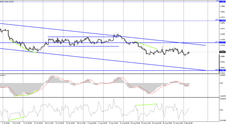 EUR/USD. 6 сентября. Европейская статистика добивает евро.ИнстаФорекс - Instaforex, 3 года назад Добрый день, уважаемые трейдеры! Пара EUR/USD в понедельник выполнила разворот в пользу валюты ЕС и возврат к уровню коррекции 323,6% - 0,9963. В тот же понедельник котировки пары выполняли закрытие под боковым коридором, таким образом, падение евровалюты может возобновиться сегодня или завтра в направлении уровня 0,9782. Я не рассчитываю на сильный рост до четверга, когда будут оглашены итоги заседания ЕЦБ. В то же время отмечаю, что за несколько дней до заседаний центральных банков трейдеры могут вести себя не так, как обычно, торговать, стараясь предугадать результаты заседания. А предугадывать в этот раз особенно нечего, так как многие представители ЕЦБ уже высказались в пользу второго подряд повышения процентной ставки. Неясным остается лишь значение, на которое она будет повышена: либо 0,50%, либо 0,75%. Тем временем информационный фон понедельника и вторника не способствовал покупкам европейской валюты. Вчера индекс деловой активности в секторе услуг упал до 49,8, а составной индекс – до 48,9. Сегодня индекс деловой активности в секторе строительства сократился до 44,2. Также в понедельник вышел отчет по розничной торговле, объемы которой сократились на 0,9% г/г, что примерно соответствовало ожиданиям трейдеров. Но в целом статистику я не могу назвать позитивной. Трейдеры продолжают опасаться газового кризиса в Евросоюзе, что может еще долгое время негативно сказываться на европейской экономике и европейской валюте. Несмотря на то что Еврокомиссия уже разрабатывает варианты помощи домохозяйствам, счета за электроэнергию выросли почти в два раза и эксперты считают, что они будут продолжать расти. Поставки газа в Европу из России фактически прекращены. Надежды на то, что Москва еще возобновит их, есть, но они тают с каждым днем. Официальная позиция Москвы - неисправная турбина газопровода, которую невозможно починить из-за санкций, введенных против РФ. Таким образом, возможно, что газ из России уже никогда не будет поступать в ЕС. На 4-часовом графике пара выполнила разворот в пользу валюты США и закрепление под уровнем коррекции 127,2% - 1,0173. Таким образом, процесс падения может быть продолжен в направлении уровня Фибо 161,8% - 0,9581. Нисходящий трендовый коридор по-прежнему характеризует настроение трейдеров как «медвежье». Новых назревающих дивергенций сегодня не наблюдается ни у одного индикатора. Отчет Commitments of Traders (COT):