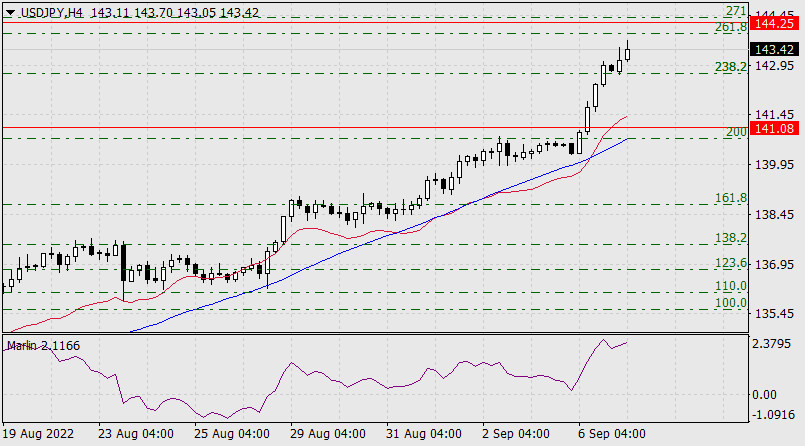 Прогноз по USD/JPY на 7 сентября 2022 годаИнстаФорекс - Instaforex, 3 года назад Японская йена стала опасаться мирового кризиса не меньше европейских валют. Вчера данные по расходам домохозяйств за июль показали уменьшение на 1,4% против прогноза -0,6%. В годовом исчислении прирост сократился с 3,5% г/г до 3,4% г/г. На фоне укрепления индекса доллара на 0,39% йена ослабла на 1,57%.