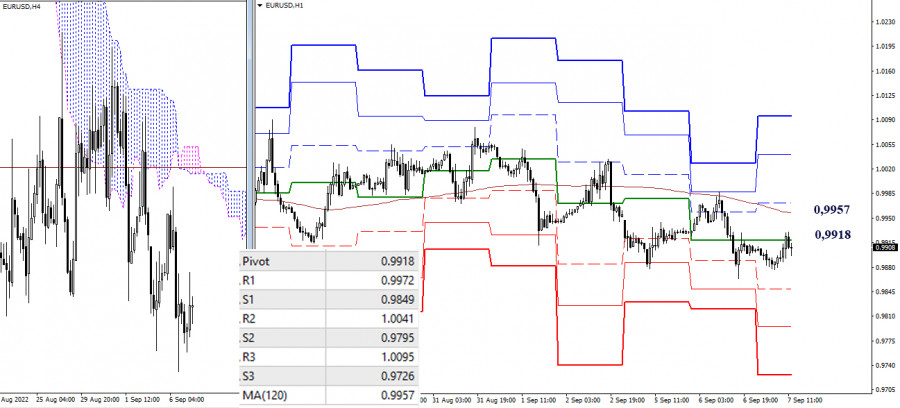 EUR/USD и GBP/USD 7 сентября – рекомендации технического анализаИнстаФорекс - Instaforex, 3 года назад EUR/USD Старшие таймфреймы Результативного снижения не состоялось. Пара вновь не сумела закрыть день ниже предыдущего экстремума (0,9901). Если медведям сейчас не удастся вернуться к развитию нисходящего тренда, следующими ориентирами которого в перспективе можно обозначить 0,9000 (психологический уровень) и 0,8225 (минимальный экстремум 2000 года), то внимание игроков на повышение будет направлено на обретение поддержки в районе 0,9977 – 1,0000 (дневной краткосрочный тренд + психологический уровень) и ликвидацию дневного мёртвого креста (1,0066 – 1,0124 – 1,0181), усиленного недельным краткосрочным трендом (1,0124). Н4 – Н1 Сопротивление недельной долгосрочной тенденции сдерживает ситуацию от перемены настроений. Основное преимущество остаётся на стороне игроков на понижение. Ориентирами для снижения внутри дня являются поддержки классических Пивот-уровней. Сегодня они расположены на 0,9849 – 0,9795 – 0,9726. Ключевые уровни младших таймов в настоящий момент можно отметить на 0,9918 (центральный Пивот-уровень) и 0,9957 (недельная долгосрочная тенденция). Закрепление выше может изменить действующий баланс сил. Следующие повышательные ориентиры находятся на 0,9972 – 1,0041 – 1,0095 (сопротивления классических Пивот-уровней). *** GBP/USD Старшие таймфреймы Игрокам на повышение вчера не удалось результативно развить зародившуюся коррекцию, поэтому ситуация не претерпела существенных изменений. Ближайшей поддержкой остаётся 1,1411. Пробой 1,1411 на старших таймах откроет новые перспективы. Ближайшим сопротивлением служит дневной краткосрочный тренд (1,1672). Н4 – Н1 На младших таймах игроки на понижение сохраняют преимущество. Сейчас для продолжения снижения можно отметить в качестве ориентиров поддержки классических Пивот-уровней (1,1423 – 1,1354). Ключевые уровни сегодня служат сопротивлением и они объединились в районе 1,1539-43 (недельная долгосрочная тенденция + центральный Пивот-уровень. Далее повышательные ориентиры расположены на 1,1586 - 1,1655 - 1,1702 (сопротивления классических Пивот-уровней). Они вступят в работу в случае смены действующего баланса сил. *** При техническом анализе ситуации используются: старшие таймфреймы – Ichimoku Kinko Hyo (9.26.52) + уровни Фибо Киджун Н1 – Pivot Points (классические) + Moving Avarage 120 (недельная долгосрочная тенденция) Материал предоставлен компанией InstaForex - www.instaforex.com |