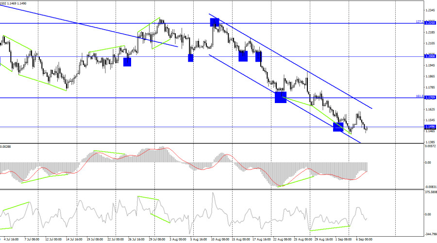 Добрый день, уважаемые трейдеры! На часовом графике пара GBP/USD выполнила новый разворот в пользу доллара США и возобновила процесс падения в направлении уровня коррекции 423,6% - 1,1306. На этой неделе в Великобритании и США очень мало важных событий. Вчера вышел индекс деловой активности в секторе услуг ISM, который опять удивил, и превысил ожидания трейдеров, составив 56,9 пункта. Можно было бы сказать, что доллар вырос из-за этого показателя, но доллар растет в последние месяцы практически постоянно, даже в те дни, когда экономической статистики нет. Сегодня в Британии состоится выступление губернатора Банка Англии Эндрю Бейли, и это может быть интересно. В последнее время трейдеры откровенно запутались в своих ожиданиях по различным показателям экономики Великобритании. Начали уже поступать прогнозы о том, что инфляция может значительно превысить 15%. По рецессии говорят, что она будет длиться 5 кварталов или более. По итоговому повышению процентной ставки Банка Англии никакой информации нет. Насколько может снизиться британский ВВП, учитывая приближающийся энергетический кризис, непонятно. Как сильно вырастут цены на нефть и газ этой зимой – тем более. Из-за полной неопределенности трейдеры предпочитают иметь дело с той валютой, владение которой несет в себе наименьшие риски. Доллар США растет уже довольно долго и является резервной валютой. Таким образом, трейдеры вполне логично выбирают именно его для покупок, а не евро или фунт. В свете этого вывода мне кажется, что рост американской валюты будет продолжаться до тех пор, пока что-либо в мировой экономике не поменяется кардинально. Например, закончится конфликт на Украине, начнут налаживаться экономические отношения между Россией и Западом, ФРС перестанет повышать процентную ставку, рецессия не начнется или быстро завершится. Совершенно очевидно, что при текущем информационном фоне трейдеры не готовы покупать рисковые европейские валюты. И Эндрю Бейли может сегодня хотя бы немного прояснить ситуацию с будущим британской экономики. Но наверняка он будет пессимистичен, как и ранее. На 4-часовом графике пара выполнила разворот в пользу американской валюты и возобновила процесс падения с закреплением под уровнем 1,1496. Таким образом, процесс падения котировок может продолжаться в направлении следующего коррекционного уровня 200,0% - 1,1111. В данное время назревает новая «бычья» дивергенция у индикатора MACD, которая может вновь сработать в пользу британца. Нисходящий трендовый коридор продолжает характеризовать настроение трейдеров, как «медвежье». Отчет Commitments of Traders (COT):