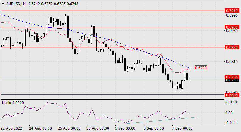 Прогноз по AUD/USD на 8 сентября 2022 годаИнстаФорекс - Instaforex, 3 года назад В среду рост австралийского доллара составил 34 пункта, сегодня в азиатскую сессию этот рост уже был покрыт снижением. Переход цены над уровень сопротивления 0.6755 оказался ложным, соответственно, цена направляется к цели 0.6685. Уход под уровень откроет цель 0.6640.