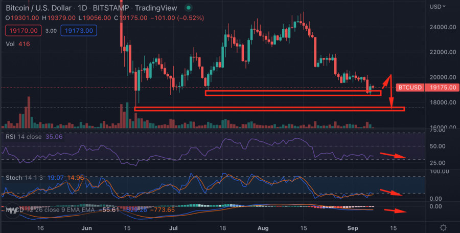 Биткоин сохраняет фундаментальную прочность даже в медвежьем рынке: когда ждать первой оттепели?ИнстаФорекс - Instaforex, 3 года назад Рынок криптовалют и Биткоин входят в очередную фазу медвежьего рынка. Капитализация всех цифровых активов в очередной раз просела за отметку в $1 триллион, что указывает на снижение покупательской активности и усугубление краткосрочных негативных факторов. Несмотря на это, Биткоину удалось реализовать локальный бычий импульс и закрепиться выше $19,1k. Бычий отскок криптовалюты в очередной раз доказал мощный фундамент Биткоина. Главная криптовалюта в моменте снижалась до нижней границы уровня поддержки $18,5k, но впоследствии покупатели не пустили цену ниже. В результате Биткоин сформировал зеленую свечу и закрепился выше $19k. В локальной перспективе это позитивный момент, который отсрочит дальнейшее снижение цены. На дистанции в 7-10 дней отскок криптовалюты не носит фундаментального значения, так как обстановка остается медвежьей. Зеленая свеча по итогам 7 сентября оказалась неспособной поглотить объемы продавцов. Технические метрики подтверждают сохранение инициативы за медведями. Индекс RSI и стохастик пытались реализовать бычий импульс, но в итоге метрики развернулись под напором продавцов. На дневном таймфрейме мы видим, как цена Биткоина постепенно приближается к штурму финального отрезка поддержки $18,5k-$19,1k. Котировки BTC/USD завершили первый закол уровня $18,5k. Вероятней всего, в течение следующих нескольких дней мы увидим повторный ретест области поддержки. Очередной этап падения цены спровоцирует новостной фон, который рискует подтвердить пессимистичные ожидания рынка. Несмотря на это многие аналитики отмечают, что Bitcoin демонстрирует высокий уровень устойчивости в текущем медвежьем рынке. Это говорит о высоком уровне фундаментального интереса к Биткоину, который в ближайшем будущем способен изменить ситуацию в лучшую сторону. Первым сигналом к постепенной стабилизации ситуации стали неожиданные выводы Arcane Research о финансовой устойчивости публичных майнинг-компаний. Аналитики подтвердили, что большинство майнеров столкнулось с финансовыми трудностями из-за кризиса энергоресурсов, а также падения цены Биткоина. Однако благодаря крупным запасам криптовалют и финансовых резервов майнинг-компании выстояли. По состоянию на 8 сентября ни один из публичных майнеров не подал заявку на банкротство. Учитывая этот факт, а также постепенно растущий хешрейт Биткоина (+9% за август), в Arcane пришли к выводу, что худший период для майнеров позади. Помимо хешрейта, об этом свидетельствует позитивная динамика роста резервных объемов майнинг-компаний. Улучшение положения майнинг-компаний во многом было связано с постоянной распродажей монет BTC для получения ликвидности. В моменте этот процесс оказывал сильное нисходящее давление на цену криптовалюты. Если смотреть на ситуацию в долгосрочной перспективе, то распродажа майнеров – логичный и оздоровительный процесс передачи монет долгосрочным инвесторам. Именно этот процесс мы и наблюдаем последние три месяца. За этот период количество кошельков с 0,1-10 000 BTC обновило абсолютные максимумы, что подтверждает активный период накопления, который характерен для коррекционных циклов Bitcoin. Также наблюдается активное уменьшение балансов монет BTC на крипто
