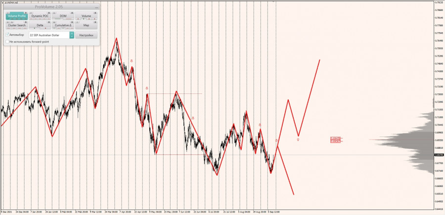 Долгосрочная тенденция: в шорт. Максимальное скопление объемов текущего контракта расположено в диапазоне по котировкам 0.69267-0.69478. В настоящий момент по паре совершаются инвестиционные операции ниже, указывая на силу продавцов.