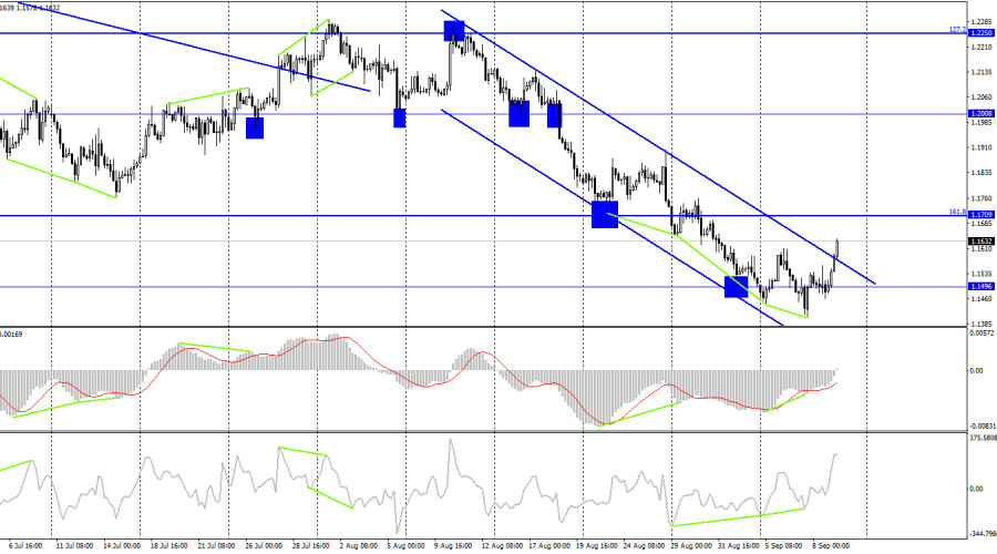 Добрый день, уважаемые трейдеры! На часовом графике пара GBP/USD продолжает процесс роста и буквально пару часов назад отработала нижнюю линию нисходящего трендового коридора. Отбой котировок от этой линии сработает в пользу американской валюты и возобновления падения в направлении коррекционного уровня 423,6% - 1,1306. Закрепление курса пары над коридором и над уровнем 1,1684 повысит вероятность дальнейшего роста в направлении уровня Фибо 323,6% - 1,1883. Информационный фон вчера практически отсутствовал для британца и американца. В США вышел единственный отчет по заявкам на пособия по безработице, число которых составило немного меньше, чем ждали трейдеры. Однако новостью дня стало прискорбное событие в Великобритании, где ушла из жизни королева Елизавета II. Ей было 96 лет. Однако вряд ли можно сделать вывод, что британец сейчас растет из-за этой вести. Таким образом, вероятнее всего, европейская валюта тащит за собой вверх британскую. Других объяснений сейчас попросту быть не может. Заседание Европейского центрального банка и повышение ставки оказало на фунт более благотворное влияние, чем заседания Банка Англии и его повышения ставки. Возможно, такая реакция трейдеров вообще не связана с ЕЦБ. Евро и фунт находились в процесс падения долгие месяцы, и сейчас могла начаться обычная коррекция. Рост британца на 240 пунктов от его лоу за почти 40 лет невозможно назвать «сильным». Пока что даже предыдущий тренд не сломан. Падение может возобновиться в любой момент. Я считаю, что сейчас важно дождаться, когда трейдеры отработают итоги заседания ЕЦБ, и убедиться в том, что за счет этого события ни евро, ни фунт больше не будут расти. После этого станет ясно, какие перспективы открываются перед обеими валютами. К примеру, на 4-часовом графике котировки уже сегодня могут выполнить закрытие над нисходящим коридором. А это будет достаточно сильный сигнал к покупкам. В пятницу информационный фон будет отсутствовать. На 4-часовом графике пара выполнила разворот в пользу британца и продолжает процесс роста после образования «бычьей» дивергенции у индикатора CC I(а также у индикатора MACD) в направлении коррекционного уровня 161,8% - 1,1709. Закрепления над нисходящим трендовым коридором еще не произошло, и я считаю этот коридор менее информативным, чем коридор на часовом графике. Определить отмену нисходящего тренда можно будет по закрытию над обоими коридорами. Отчет Commitments of Traders (COT):