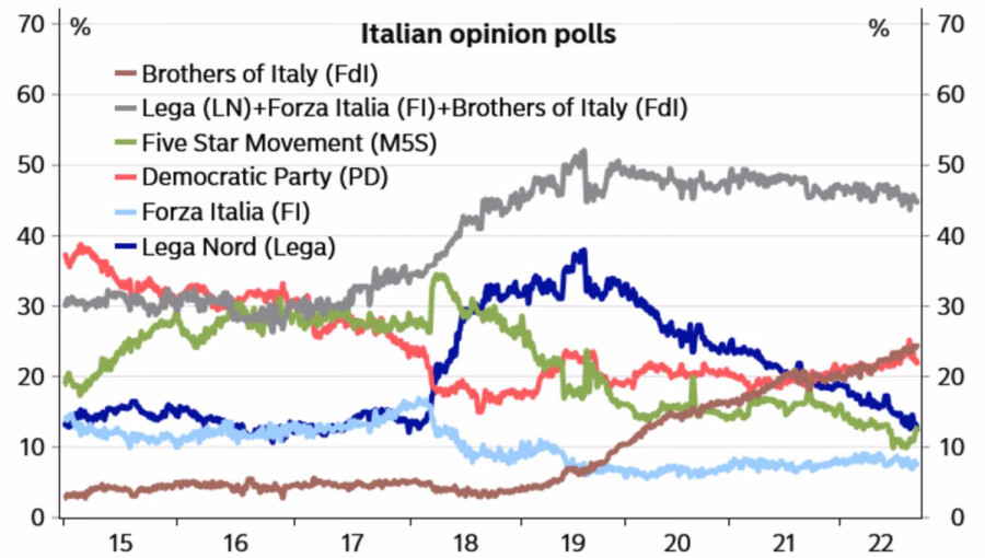 Евро пытался взлететь. Не получилосьИнстаФорекс - Instaforex, 3 года назад Падение цен на газ, решительность ЕЦБ, растущие шансы получить сильное итальянское правительство и ожидания замедления американской инфляции позволили «быкам» по EURUSD перейти в контратаку. Пара взлетела выше 1,01, однако затем была вынуждена отступить. И инвесторов возникло ощущение дежавю. Если летом поход рынка акций против ФРС обернулся разгромом, то почему бы этой истории не повториться осенью? Если повышение ставки по депозитам на 75 б.п. и спич Кристин Лагард не особенно впечатлили «быков» по EURUSD, то ралли S&P 500 протянуло им руку помощи. По прогнозам экспертов Bloomberg, потребительские цены в США в августе замедлились с 8,5% до 8,1%, что в теории может снизить скорость монетарной рестрикции ФРС и ослабить доллар. По крайней мере, после релиза данных по июльской инфляции фондовые индексы и евро дружно ринулись вверх. Тогда все закончилось печально. Буквально через несколько дней S&P 500 достиг локального максимума, после чего просел на 9%. Федрезерв дал четко понять, что не намерен останавливаться, пока не выполнит свою работу. Ставка по федеральным фондам может вырасти до 4% к концу 2022, что заставляет фондовые индексы трижды подумать, чтобы решиться на ралли. Доллар по-прежнему силен, однако и у евро дела пошли на лад. Во-первых, монетарная политика ЕЦБ стала гораздо более прозрачной, чем ранее. Европейский Центробанк пошел по пути своих американских коллег, закрыв глаза на потенциальную рецессию. Это усиливает риски, что и октябре затраты по займам вырастут на 75 б.п. Во-вторых, опросы показывают, что возглавляемая Братьями Италии коалиция может набрать 252-262 из 400 мест в нижней палате парламента и 125-133 из 200 в верхней, чего будет достаточно для изменения Конституции без референдума. Сильное правительство в проблемной стране – хорошая новость для EURUSD. Динамика популярности политических партий в Италии Наконец, в-третьих, перекрыв Северный поток, Россия использовала свой последний козырь в газовой войне. Ожидания смерти хуже самой смерти, поэтому, как только краны были перекрыты, инвесторы поняли, что самое худшее уже произошло. Первоначальный шок привел к взлету голубого топлива, однако затем цены пошли вниз, что оказывает поддержку евро. Во всех трех случаях, с ЕЦБ, с итальянской политикой и энергетическим кризисом, снизилась неопределенность, что стало глотком свежего воздуха для «быков» по EURUSD. При поддержке фондовых индексов США они ринулись в атаку, однако, на мой взгляд, потенциал коррекции представляется ограниченным. Вооруженный конфликт на Украине и газовый кризис никуда не исчезли, а ФРС настроена решительно. Технически на дневном графике EURUSD отбой от скользящих средних с последующим снижением к минимуму бара пробоя, где также находится справедливая стоимость в $1 за евро, - сигнал для продаж. Обновление локального максимума на 1,0115 может стать основанием для краткосрочных лонгов с последующим переходом к среднесрочным шортам на отбое от 1,018 и 1,022. Материал предоставлен компанией InstaForex - www.instaforex.com |