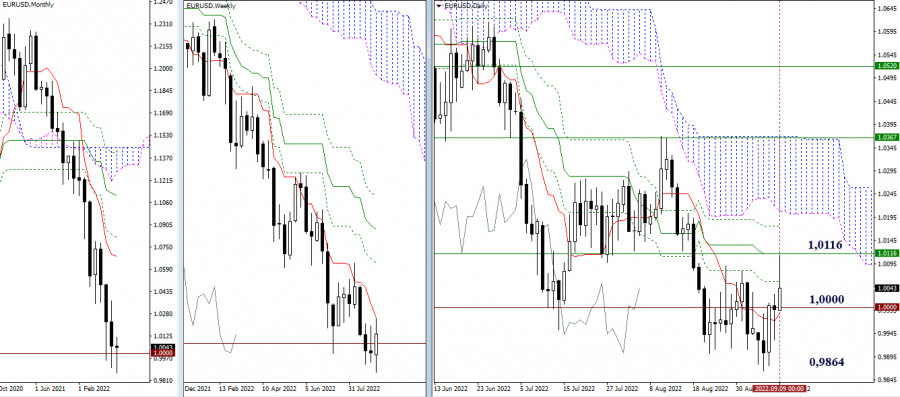 EUR/USD и GBP/USD - итоги недели и перспективыИнстаФорекс - Instaforex, 3 года назад EUR/USD Старшие таймфреймы Выполненное на неделе обновление минимального экстремума не привело к закреплению и восстановлению нисходящего тренда. Вместо этого пара приступила к реализации нового восходящего коррекционного движения, в результате которого осуществлён подъём к рубежу сопротивлений 1,0116 (дневной среднесрочный тренд + недельный краткосрочный тренд). Задачами игроков на повышение на ближайшее время является пробой уровней (1,0116), ликвидация дневного мёртвого креста (1,0176) и вход в дневное облако (1,0203). Для игроков на понижение дополнительные перспективы начнут обретать значение лишь после восстановления нисходящего тренда (0,9864 минимальный экстремум). Н4 – Н1 Преимущество на младших таймфреймах принадлежит игрокам на повышение. Если они сумеют пройти встреченные сопротивления, где свои усилия сейчас объединяют ориентиры старших таймов (1,0116) и цель на пробой облака Н4 (1,0102-28), то появятся более глобальные повышательные ориентиры. Внутри дня дополнительными ориентирами при этом будут оставаться сопротивления классических Пивот-уровней. Ключевые уровни сейчас являются поддержками и расположены в настоящий момент в районе 0,9986-63 (центральный Пивот-уровень дня + недельная долгосрочная тенденция). *** GBP/USD Старшие таймфреймы На прошедшей неделе игроки на понижение протестировали минимальный экстремум 2020 года 1,1411. Результатом тестирования стало формирование отбоя и развитие дневной коррекции до дневного краткосрочного тренда (1,1582). При продолжении коррекции основной задачей для игроков на повышение станет обретение поддержки недельного краткосрочного тренда (1,1848) и ликвидация дневного мёртвого креста 1,1840 – 1,1943 (заключительные уровни). Н4 – Н1 Пара закрепилась выше ключевых уровней младших таймов (1,1507-23) и вошла в медвежье облако Н4. Развитие восходящего движения позволит при пробое облака сформировать новую повышательную цель, кроме этого повышательными ориентирами внутри дня служат сопротивления классических Пивот-уровней. Закрепление ниже ключевых уровней (1,1507-23) изменит действующий баланс сил и вернёт на рынок игроков на понижение, основная цель которых будет заключаться в восстановлении нисходящего тренда (1,1404). *** При техническом анализе ситуации используются: старшие таймфреймы – Ichimoku Kinko Hyo (9.26.52) + уровни Фибо Киджун Н1 – Pivot Points (классические) + Moving Avarage 120 (недельная долгосрочная тенденция) Материал предоставлен компанией InstaForex - www.instaforex.com |