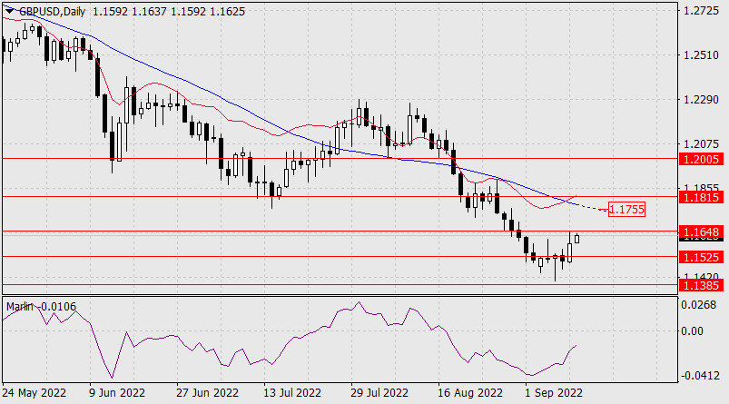 Прогноз по GBP/USD на 12 сентября 2022 годаИнстаФорекс - Instaforex, 3 года назад В пятницу фунт стерлингов подрос на 86 пунктов. Верхней тенью был протестирован уровень 1.1648 – минимум 29 августа. Закрепление над сопротивлением откроет целевой диапазон 1.1755-1.1815, образованный индикаторной линией Крузенштерна дневного масштаба и целевым уровнем 1.1815.