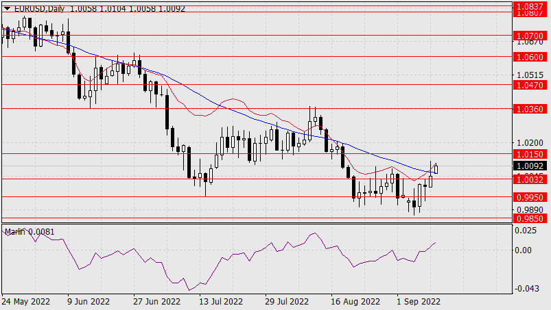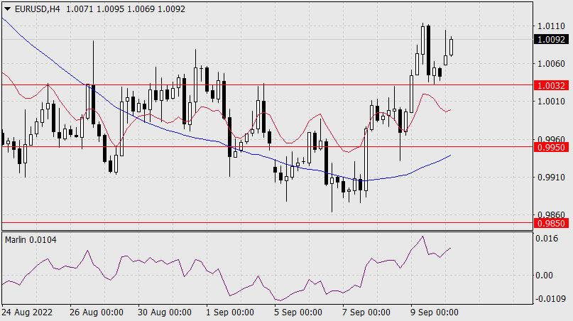 Прогноз по EUR/USD на 12 сентября 2022 годаИнстаФорекс - Instaforex, 3 года назад Евро закрыл пятничный день ростом на 48 пунктов, закрытие произошло выше целевого уровня 1.0032. Верхняя тень пробилась над индикаторную линию Крузенштерна. Сегодняшний день открылся в точности на линии Крузенштерна и в первые часы торговой сессии был показан рост. Также осциллятор Марлин вышел в положительную область.