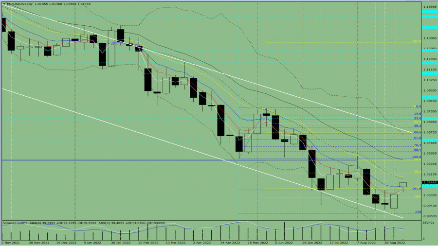 Технический анализ на неделю, с 12 по 17 сентября, по валютной паре EUR/USDИнстаФорекс - Instaforex, 3 года назад Трендовый анализ (рис. 1). На этой неделе рынок от уровня 1.0042 (закрытие последней недельной свечи) продолжит движение вверх с целью достижения откатного уровня 38.2% – 1.0224 (жёлтая пунктирная линия). От этого уровня рынок попробует продолжить движение вверх с целью тестирования откатного уровня 50.0%, 1.0325 (жёлтая пунктирная линия). При тестировании этого уровня цена может откатить вниз со следующей целью 1.0181 – 13 средняя ЕМА (жёлтая тонкая линия). Рис. 1 (недельный график). Комплексный анализ: - индикаторный анализ – вверх; Вывод по комплексному анализу: восходящее движение. Общий итог расчёта свечи валютной пары EUR/USD по недельному графику: цена на неделе, вероятнее всего, будет иметь восходящую тенденцию с отсутствием первой нижней тени у недельной белой свечи (понедельник – вверх) и отсутствием второй верхней тени (пятница – вверх). На этой неделе рынок от уровня 1.0042 (закрытие последней недельной свечи) продолжит движение вверх с целью достижения откатного уровня 38.2% – 1.0224 (жёлтая пунктирная линия). От этого уровня рынок попробует продолжить движение вверх с целью тестирования откатного уровня 50.0%, 1.0325 (жёлтая пунктирная линия). При тестировании этого уровня цена может откатить вниз со следующей целью 1.0181 – 13 средняя ЕМА (жёлтая тонкая линия). Альтернативный сценарий: пара от уровня 1.0042 (закрытие последней недельной свечи) продолжит движение вверх с целью достижения откатного уровня 38.2% – 1.0224 (жёлтая пунктирная линия). При тестировании этого уровня цена может откатить вниз со следующей целью 1.0079 – целевой уровень 161.8% (синяя пунктирная линия).От этого уровня возможно продолжение восходящего движения. Материал предоставлен компанией InstaForex - www.instaforex.com |