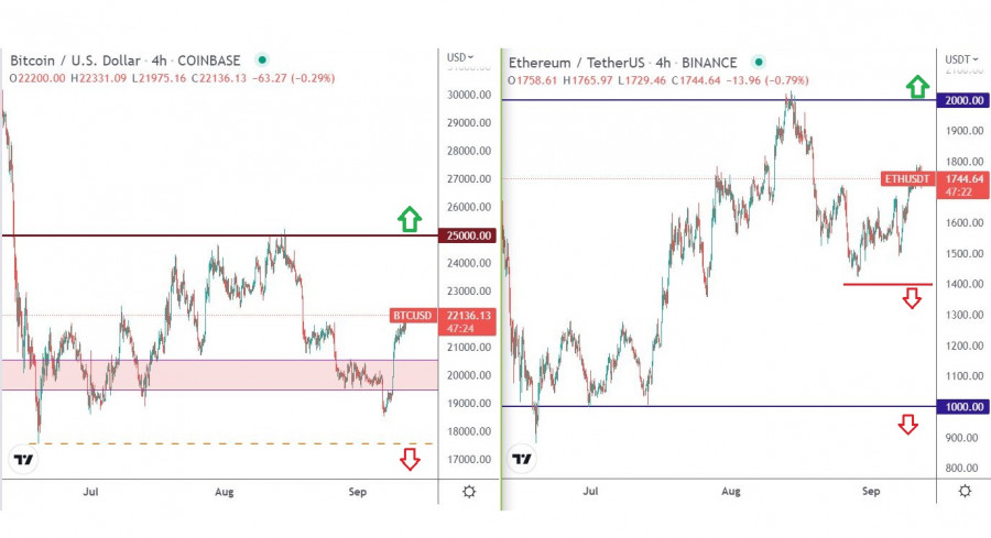 Криптовалюта - "тихая гавань" - самый оптимальный защитный активИнстаФорекс - Instaforex, 3 года назад Приветствую криптохомячков и бывалых криптоэнтузиастов! Неужели самый рискованный по натуре актив может стать «тихой гаванью» в непростой политико-экономической ситуации? Бывший генеральный директор BitMEX Артур Хейс, ныне один из самых известных крипто-инфлюэнсеров, опубликовал новое эссе под названием For the War. Исходя из материла, Хейс попытался доказать, что золото и реальные деньги не помогут защитить капитал во время войны, а Bitcoin поможет. Основные тезисы: • BTC невозможно конфисковать или запретить. В этом и есть основанная ценность децентрализованных активов. • BTC не имеет физического воплощения, его можно хранить и быстро конвертировать в любые эквиваленты. • BTC находится вне системы и «вне денег». • Во время войны государства жестко регулируют движение капитала в ущерб для граждан. • Во время войны растут свободные рынки, а если товары свободного рынка будут оцениваться в электронной валюте, то этой валютой будет BTC. Многоуважаемый Артур Хейс в своем эссе пытается манипулировать аудиторией эмоциями, утверждая, что BTC - это единственный актив, который может себя показать в беспокойное для мира время. Так ли это на самом деле - сомневаюсь. Децентрализация и с чего все начиналось в криптовалюте, уже не имеет силу, у правительства уже имеется достаточно данных и инструментов влияния на так называемый «независимый актив». Сможет ли самый рискованный по натуре актив стать самым безопасным и надежным? Очень хотелось бы это увидеть в реальности, но не в текущий момент. Стоит отметить, что Артур Хейс является инвестором-спекулянтом, он неоднократно в своем контенте прогнозировал возможный курс криптовалют. Ему выгоден рост криптовалютного рынка, на это он делает основной упор. Если быть еще более прямолинейным, то это выглядит как: покупайте ETH и BTC, у меня по ним лонг. К примеру, на минувшей недели Артур Хэйес в интервью Bankless допустил взлет котировок Ethereum до уровня $3 000 после перехода основной сети на алгоритм консенсуса Proof-of-Stake (PoS). Этот прогноз имеет свою логику, но суть этого примера в ином. Что происходит на торговых графиках Bitcoin и Ethereum?Общая картина рынка: • 87 дней без обновления локального минимума BTC и ETH • 304 дня глобальному нисходящему тренду на криптовалютном рынке • 20% роста по BTC от локального минимума 7 сентября • 25% роста по ETH от локального минимума августа • +19 пунктов прибавил Crypto Fear & Greed Index от локального дна (18 июня) • +$189 млрд к капитализации от локального дна (18 июня) Детали Bitcoin Последний месяц лета пролетел в красных тонах для криптовалютного рынка. Bitcoin с 15 августа по 7 сентября потерял от стоимости 26%. В итоге котировка локально опустилась ниже отметки $19 000. Панический настрой среди трейдеров рос на глазах, но вместе с повсеместной распродажей долларовых позиций развернулся и криптовалютный рынок. Вследствие чего котировка BTC подскочила в стоимости примерно на 20%, частично восстанавливаясь относительно недавнего снижения. Несмотря на сохранявшийся глобальный медвежий тренд, все еще есть надежда на рост Bitcoin. Для начала котировке необходимо вернуться в район уровня $25 000, после чего возможно рассмотрение дальнейшее восходящее движение. Из интересных моментов стоит выделить недавнее заявление всеми известной компании