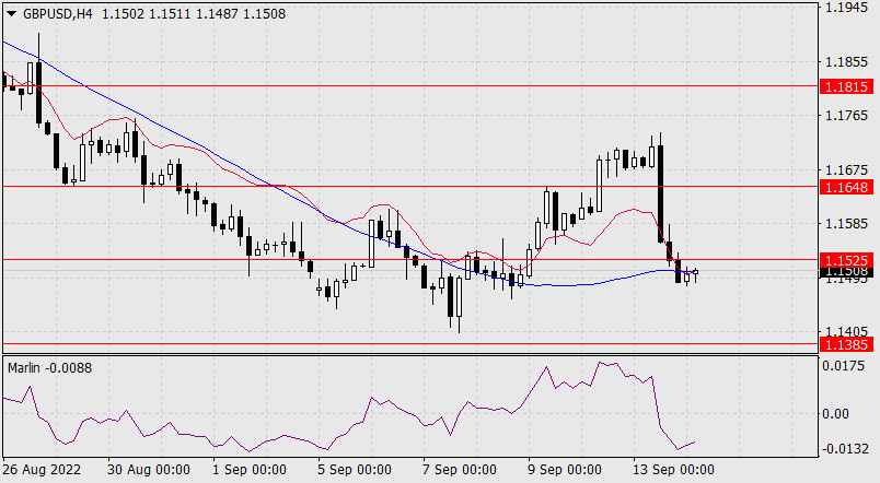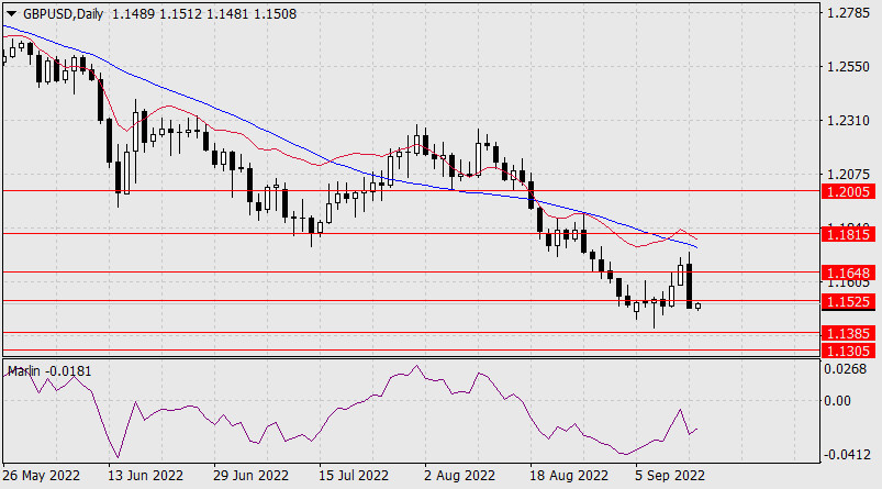 Прогноз по GBP/USD на 14 сентября 2022 годаИнстаФорекс - Instaforex, 3 года назад Британский фунт вчера резко развернулся вниз, так и не дотянув до сопротивления линии Крузенштерна дневного масштаба. Цена ушла под целевой уровень 1.1525, перед ней открыта поддержка 1.1385. С уходом под уровень откроется цель 1.1305. Осциллятор Марлин на дневном графике снижается в отрицательной области – в зоне понижающейся тенденции.