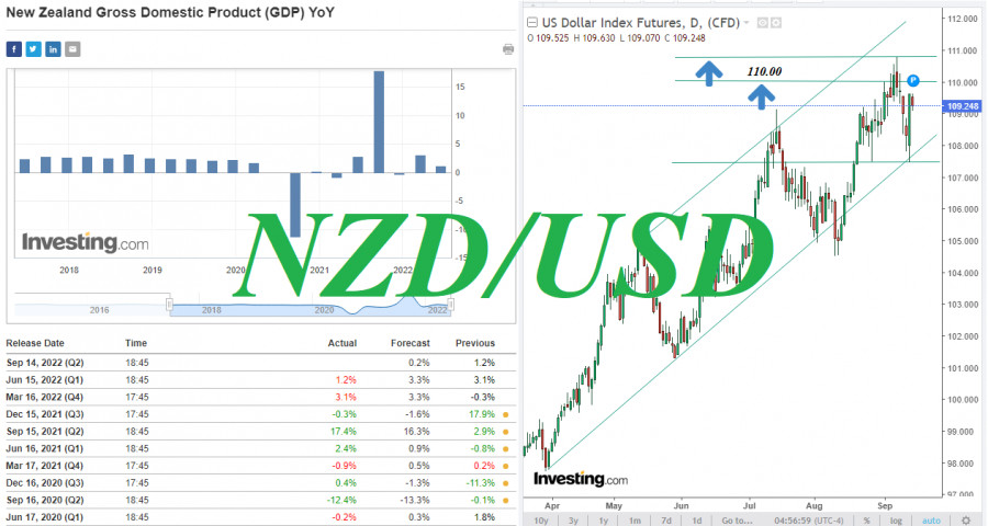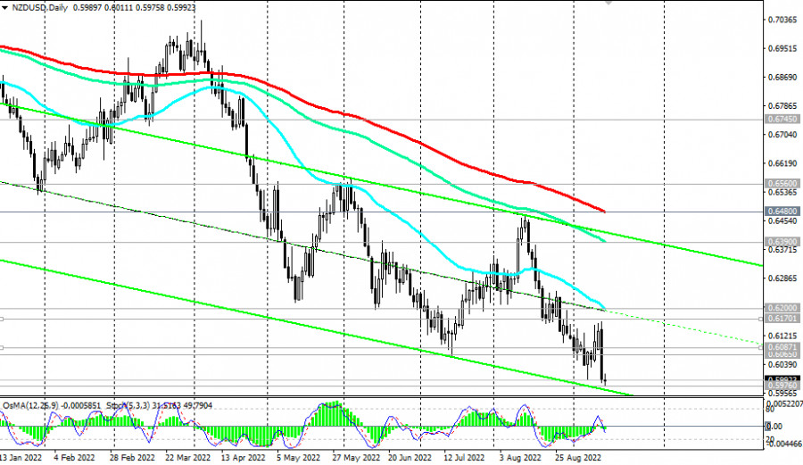 NZD/USD: ближайшие перспективыИнстаФорекс - Instaforex, 3 года назад Получив мощную поддержку от опубликованных во вторник (в 12:30 GMT) свежих данных по инфляции в США, доллар резко укрепился. Его индекс DXY подскочил сразу на 2% от достигнутого вчера же 4-недельного минимума на отметке 107.45, вновь поднявшись в зону выше уровня сопротивления 109.00. Как сообщили в Бюро трудовой статистики США, в августе потребительская инфляция вновь начала набирать обороты. Из отчета следует, что инфляция в США в августе выросла выше ожиданий: индекс потребительских цен (CPI) вышел со значением +8,3% (в годовом исчислении) против прогноза +8,1% и +8,5% в предыдущем месяце (в месячном выражении инфляция выросла на +0,1% с 0% в июле, что оказалось выше ожиданий о снижении на -0,1%). Это, в свою очередь, делает повышение ставки на 75 базисных пунктов на заседании FOMC на следующей неделе теперь «практически гарантированным», говорят экономисты. Теперь, по их мнению, «устойчивое возвращение к 2% инфляции в настоящее время становится еще более отдаленным», и ФРС предстоит еще «долгий путь» по возращению инфляции к целевому уровню. А это значит, что возможно еще не одно повышение процентной ставки ФРС на 0,75% на каждом последующем заседании. Это – сильный бычий фактор для доллара. Конечно, есть одно «но» - если инфляция в США все же действительно не начнет замедляться. Теперь если из США не будут поступать явно слабые другие важные макро данные до очередной публикации инфляционных индикаторов (в середине следующего месяца), то полученный вчера сильный бычий импульс будет поддерживать позитивную динамику доллара. На момент публикации данной статьи индекс доллара DXY остается выше уровня 109.00, находясь на отметке 109.24. Его позитивная динамика сохраняется. Пробой вчерашнего максимума 109.62 обусловит дальнейший рост DXY к уровням 20-летней давности выше отметки 120.00. Сегодня участники рынка обратят внимание на публикацию (в начале американской торговой сессии) индексов цен американских производителей. Они имеют меньшее влияние на рынок и котировки доллара. Тем не менее они внесут «дополнительные краски» в общую картину ситуации по инфляции в США (подробнее см. в Важнейшие экономические события недели 12.09.2022 – 18.09.2022). Участники же рынка, следящие за котировками новозеландского доллара, будут сегодня изучать отчет Статистического управления Новой Зеландии с данными по ВВП страны за 2-й квартал (его публикация намечена на 22:45 GMT). «Этот отчет отражает общие экономические показатели и оказывает значительное влияние на решение Резервного банка Новой Зеландии по вопросам монетарной политики. Рост ВВП означает улучшение экономических условий, что делает возможным (при соответствующем росте инфляции) ужесточение монетарной политики, что, в свою очередь, обычно позитивно отражается на котировках национальной валюты». Предыдущие значения (в годовом выражении): +1,2%, +3,1%, -0,2%, +2,9%, -0,8%, +0,2%, -11,3%, 0%, +1,7%. Прогноз на 2-й квартал 2022 года: +1,0% (+0,2% в годовом выражении), что, вероятно, позитивно отразится на NZD. Данные хуже прогноза/предыдущих значений негативно отразятся на котировках NZD, и в этом случае пара NZD/USD продолжит снижаться после вчерашнего сильного падения. На момент публикации данной статьи пара NZD/USD торгуется вблизи отметки 0.5990, снижаясь вглубь нисходящего канала на недельном графике. В целом же преобладает 
