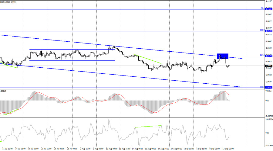 EUR/USD. 14 сентября. Рынок странно и бурно отреагировал на американскую инфляциюИнстаФорекс - Instaforex, 3 года назад Добрый день, уважаемые трейдеры! Пара EUR/USD во вторник выполнила разворот в пользу валюты США и буквально в течение нескольких часов упала к уровню коррекции 323,6% - 0,9963 практически от уровня 1,0196. Падение было очень сильным, и целиком и полностью «вина» за него лежит на отчете по инфляции в США. И вчера, и сегодня многие аналитики уже успели проанализировать этот отчет. Ничего сложного ни в нем, ни в его значении за август нет. Я полностью согласен с тем, что теперь ФРС, вероятнее всего, повысит на следующем заседании ставку на 0,75%, так как темпы падения индекса потребительских цен начали замедляться уже через месяц. Следовательно, нужен новый толчок, чтобы инфляция разгонялась уже в обратном направлении, к 2%. В то же время я соглашусь с мнением, что на самом деле отчет был не так уж и плох. Представители FOMC неоднократно заявляли, что необходимо и дальше повышать ставку, что ее итоговое значение может быть выше 4%, а период высоких ставок может затянуться на долгое время. Это означает, что в ФРС уже готовы к небыстрому возврату инфляции к целевому уровню и необходимости постоянно стимулировать ее снижение. Если трейдеры так бурно отреагировали на замедление инфляции на 0,2%, то что будет, когда ФРС еще несколько раз повысит ставку в текущем году? Выходит, что трейдеры-медведи вернутся на рынок, а доллар США еще несколько месяцев будет расти. По крайней мере, сейчас я могу сделать такой вывод. На часовом графике котировки пары выполнили уже два отбоя от уровня Фибо 323,6%, что может сработать в пользу европейской валюты и некоторого роста. Но я не думаю, что вчерашний обвал – это просто реакция на один отчет. Если медведи так массово избавлялись от евро и скупали доллар, значит они и в дальнейшем готовы к этому. Сейчас я думаю, что падение пары будет продолжаться. Уже на следующей неделе состоится заседание ФРС и может увидеть новые «полеты» пары и движения, которые не помещаются в окно терминала. На 4-часовом графике пара выполнила отбой от уровня коррекции 127,2% - 1,0173, разворот в пользу валюты США и начала падение в направлении коррекционного уровня 161,8% - 0,9581. Таким образом, нисходящий трендовый коридор продолжает характеризовать настроение трейдеров как «медвежье». Закрытие курса пары над коридором может изменить настроение трейдеров на «бычье» на долгое время, но очередная попытка закончилась провалом. Отчет Commitments of Traders (COT):