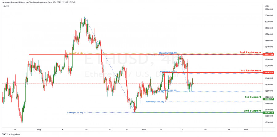 ETH/USD: вероятность медвежьего импульса 15 сентября 2022ИнстаФорекс - Instaforex, 3 года назад На 4-часовом графике цена отскочила от 2-ого сопротивления на уровне 1 798.8, где находится уровень Фибоначчи 61.8%, и откатила вниз. Следовательно, котировки сейчас движутся в нисходящем направлении. Предположительно, цена движется по направлению к 1-ой поддержке на уровне 1.508.57, что соответствует предыдущему разворотному минимуму. Если медвежий импульс продолжится, то он должен привести котировки ко 2-рй поддержке на уровне 1 420.74, где расположен предыдущий разворотный минимум. Альтернативный сценарий: цена только что прикоснулась к уровню Фибоначчи 78.6% на отметке 1 554.15. Таким образом, цена может вернуться и протестировать 1-ое сопротивление на уровне 1 676.58, что соответствует откату Фибоначчи 50%. Рекомендации по торговле Вход в сделку: 1 671.37 Причина входа в рынок: откат котировок на 50% Take Profit: 1 489.98 Причина срабатывания take profit: предыдущий разворотный минимум, уровень Фибоначчи 100% Stop Loss: 1 789.86 Причина срабатывания Stop Loss: сопротивление во время отката, откат Фибоначчи 61.8% Материал предоставлен компанией InstaForex - www.instaforex.com |