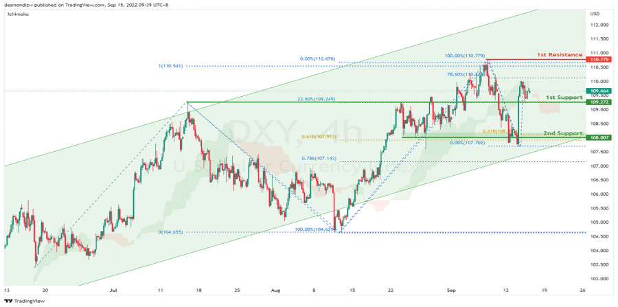 DXY: вероятность продолжения бычьего тренда 15 сентября 2022ИнстаФорекс - Instaforex, 3 года назад На 4-часовом графике цена все еще придерживается бычьего канала, так что наш прогноз остается бычьим. Цена отскочила от уровня поддержки и движется по направлению к 2-ому сопротивлению на уровне 110.779, где расположен предыдущий разворотный максимум. Альтернативный сценарий: цена может откатить назад и протестировать 1-ую поддержку на уровне 109.272, что совпадает с откатом Фибоначчи 23.6%, а затем 2-ую поддержку на уровне 108.007, где находятся откат Фибоначчи 61.8% и предыдущий разворотный минимум. Рекомендации по торговле Вход в сделку: 109.272 Причина входа в рынок: откат Фибоначчи 23.6%, вход в продажи на откате Take Profit: 110.779 Причина срабатывания take profit: предыдущий разворотный максимум Stop Loss: 108.007 Причина срабатывания stop loss: откат Фибоначчи 61.8%, предыдущий разворотный минимум Материал предоставлен компанией InstaForex - www.instaforex.com |