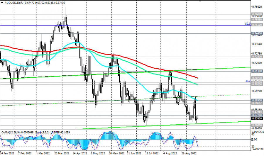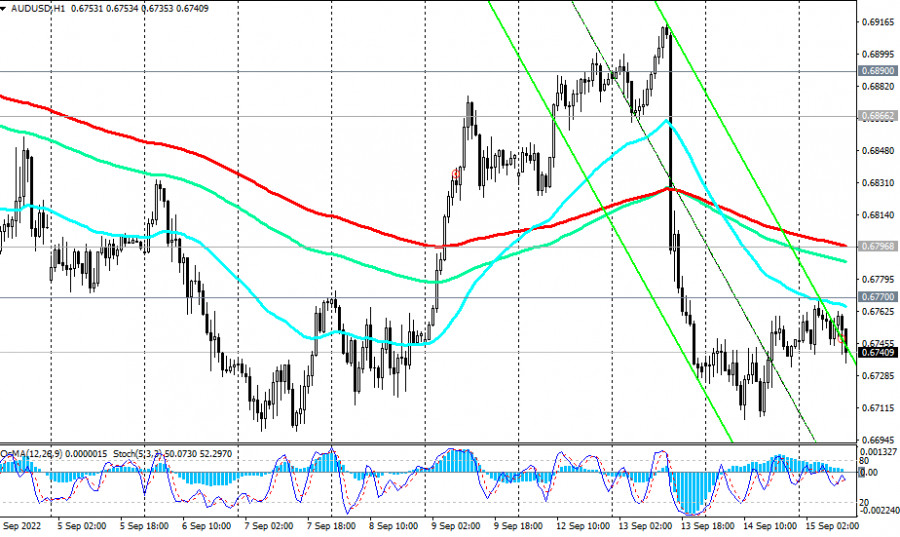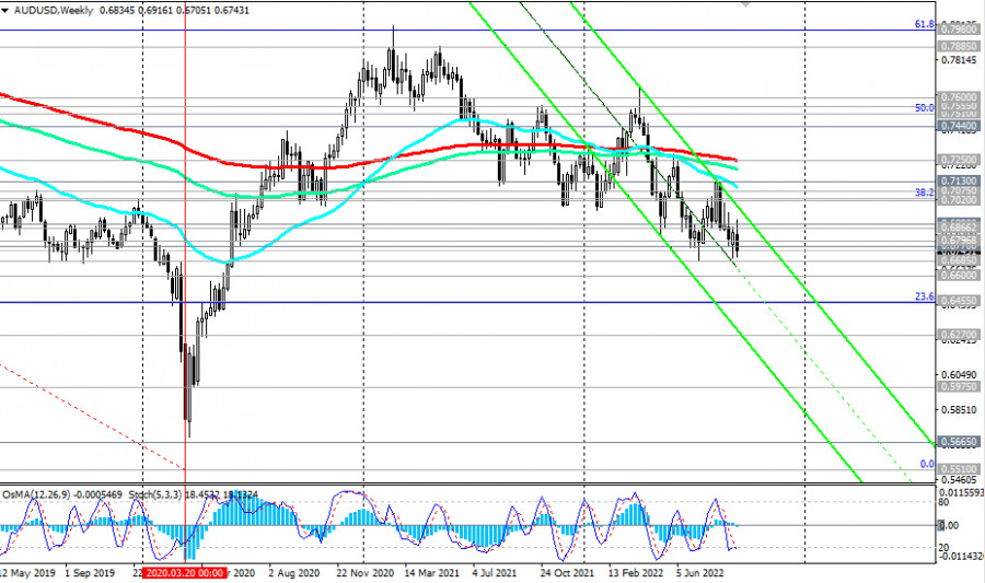 AUD/USD: технический анализ и торговые рекомендации на 15.09.2022ИнстаФорекс - Instaforex, 3 года назад Как мы отметили в нашем сегодняшнем «Фундаментальном анализе», на момент публикации данной статьи AUD/USD торгуется вблизи отметки 0.6740, двигаясь внутрь нисходящего канала на недельном графике и оставаясь ниже ключевых уровней сопротивления 0.7250 (ЕМА200 на недельном графике), 0.7075 (ЕМА200 на дневном графике). Пробой локальной поддержки на 0.6700, 0.6685, вероятно, станет драйвером дальнейшего снижения AUD/USD. В этом случае пара продолжит снижаться внутрь нисходящего канала на недельном графике. Его нижняя граница проходит вблизи отметки 0.6100. Вероятно, эта отметка и станет целью дальнейшего снижения. В альтернативном сценарии и после пробоя уровней сопротивления 0.6770, 0.6797 (ЕМА200 на 1-часовом графике) AUD/USD направится (в рамках восходящей коррекции) в сторону уровней сопротивления 0.6866 (ЕМА200 на 4-часовом графике), 0.6890 (ЕМА50 на дневном графике). О более сильном росте говорить пока что преждевременно. В основном сценарии ожидаем снижения AUD/USD. Драйвером же может выступить сегодняшняя публикация в начале американской торговой сессии важной макро статистики по США (подробнее см. в Важнейшие экономические события недели 12.09.2022 – 18.09.2022), если она подтвердится, или превзойдет ожидания рыка. *) об особенностях торговли парой AUD/USD см. в статье AUD/USD: валютная пара (характеристики, рекомендации) Уровни поддержки: 0.6700, 0.6685, 0.6600, 0.6500, 0.6455, 0.6270, 0.5975, 0.5665, 0.5510 Уровни сопротивления: 0.6770, 0.6796, 0.6866, 0.6890, 0.6900, 0.7000, 0.7020, 0.7037, 0.7075, 0.7100, 0.7130, 0.7200, 0.7250