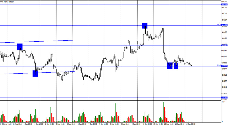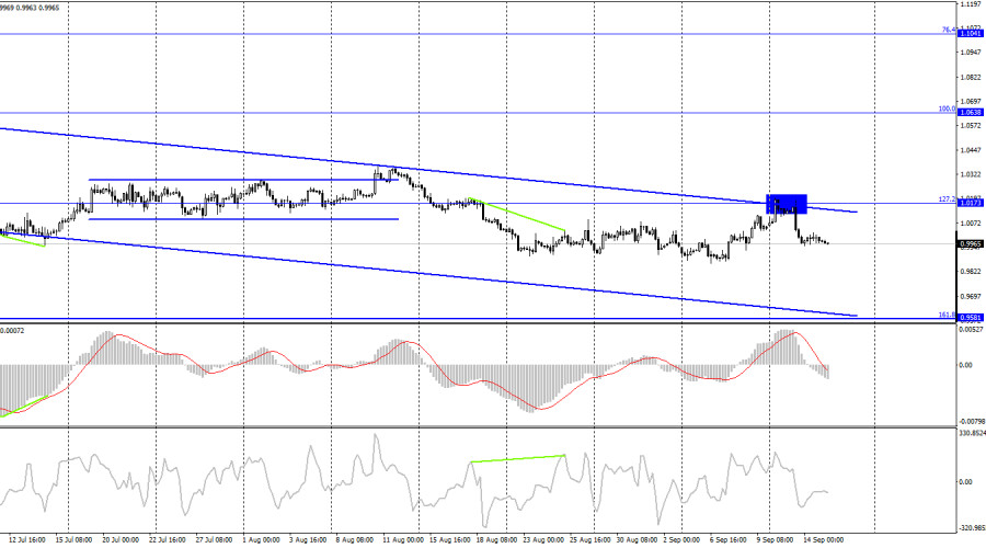 EUR/USD. 15 сентября. Евросоюз ищет способы понизить цены на энергиюИнстаФорекс - Instaforex, 3 года назад Добрый день, уважаемые трейдеры! Пара EUR/USD в среду выполнила два отбоя от уровня коррекции 323,6% - 0,9963 и небольшой рост. Этот рост был настолько небольшим, что его очень сложно называть ростом. Обычный откат. На текущий момент котировки пары выполнили возврат к уровню 0,9963 и закрытие под ним повысит вероятность дальнейшего падения евровалюты в направлении уровней 0,9900 и 0,9782. Новый отбой сработает в пользу валюты ЕС и нового роста в направлении уровня 1,0080. Учитывая события последних недель, я предполагаю сейчас, что падение евровалюты продолжится. Дело даже не в том, что американская инфляция замедлилась меньше, чем ожидали трейдеры, что повышает шансы на рост процентной ставки ФРС на 0,75%. Дело в том, что европейская экономика уже в самое ближайшее время может столкнуться с серьезной рецессией. Трейдеры могут сказать, что американская экономика уже с ней столкнулась, и будут правы. Но для валютного рынка большее значение имеют сами валюты, а не экономики стран, которых эмитировали. Рынок – это совокупность трейдеров, они имеют право проводить сделки по купле/продаже любых валют, не обращая никакого внимания на информационный фон. А последние месяцы нам показали, что внимание к американскому доллару гораздо более высокое, чем к евровалюте. Иными словами, трейдеры готовы инвестировать в доллар даже при условии начала рецессии в американской экономике. А вот евровалюту они не жаловали даже в те времена, когда о рецессии никто не говорил. Таким образом, европейская рецессия и проблемы с замещением российского газа волнуют трейдеров гораздо сильнее, чем замедление экономики США. Проблема Евросоюза является также высокие цены на энергию. Урсула фон дер Ляйен уже предложила ограничить цену на электроэнергию, произведенную не при помощи газа, и начать взымать налоги с энергетических компаний, если рыночная цена будет превышать определенный уровень. Полученные деньги будут направлены на помощь домохозяйствам и компаниям, которые используют газ при производстве энергии. Однако насколько эффективным будет этот план, пока сложно сказать. На 4-часовом графике пара выполнила отбой от уровня коррекции 127,2% - 1,0173, разворот в пользу валюты США и начала падение в направлении коррекционного уровня 161,8% - 0,9581. Нисходящий трендовый коридор продолжает характеризовать настроение трейдеров как «медвежье». Закрытие курса пары над коридором может изменить настроение трейдеров на «бычье» на долгое время, но очередная попытка закончилась провалом. Отчет Commitments of Traders (COT):