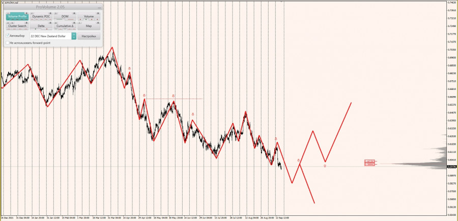Долгосрочная тенденция: в шорт. Максимальное скопление объемов текущего контракта расположено в диапазоне по котировкам 0.59992-0.60283. В настоящий момент по паре совершаются инвестиционные операции ниже, указывая на силу продавцов.