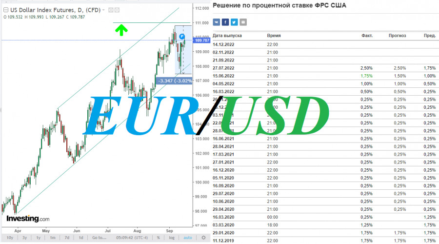EUR/USD: на следующей неделе может появиться новый драйвер. Роста или снижения?ИнстаФорекс - Instaforex, 3 года назад Начало сегодняшней европейской торговой сессии ознаменовалось новым наступлением доллара. На момент публикации данной статьи фьючерсы на индекс доллара DXY находятся вблизи отметки 109.78, на 128 пунктов выше цены открытия этой недели и на 233 пункта выше минимума этой недели, достигнутого во вторник накануне публикации американских инфляционных индикаторов. Как сообщило Бюро трудовой статистики США, в августе инфляция выросла выше ожиданий. Индекс потребительских цен (CPI) вышел со значением +8,3% (в годовом исчислении) против прогноза +8,1% и +8,5% в предыдущем месяце (в месячном выражении инфляция выросла на +0,1% с 0% в июле, что оказалось выше ожиданий о снижении на -0,1%). Из отчета следует, что инфляция вновь начала набирать обороты. Это, в свою очередь, делает повышение ставки на 75 базисных пунктов на заседании FOMC на следующей неделе теперь «практически гарантированным», говорят экономисты. Несмотря на то что другие крупнейшие мировые центральные банки также проводят цикл ужесточения своих монетарных политик, решения ФРС по процентным ставкам оказывает на рынок наибольшее влияние. Так или иначе, доля американского доллара в международных расчетах на начало этого года составляла почти 39%, как следует из материалов системы межбанковских переводов SWIFT (доля евро увеличилась до 38%, фунта стерлингов - до 6,76%, китайского юаня - 2,23%, иены - 2,71%). Собственно говоря, мы и видим, что происходит на финансовом рынке, когда публикуются решения ФРС и ЕЦБ по процентным ставкам. Исходя из нашего предположения и этих данных, следующая неделя будет особенно выделяться своей волатильностью (подробнее см. в Важнейшие экономические события недели 19.09.2022 – 25.09.2022). Во вторник начнется заседание ФРС, которое завершится в среду публикацией решения по процентной ставке. Забегая вперёд, скажем, что широко ожидается очередное повышение процентной ставки ФРС на 0,75%. В четверг же сразу 3 крупнейших мировых центральных банка (Японии, Швейцарии, Великобритании) также проведут свои заседания, посвящённые вопросам монетарной политики. В пятницу будут опубликованы важнейшие европейские и американские индексы деловой активности, которые могут вновь резко повысить волатильность в конце следующей недели. Таким образом, высокая волатильность будет сопровождать большую часть следующей торговой недели, предоставляя инвесторам массу дополнительных торговых возможностей. Эту уходящую неделю доллар завершает на позитивной территории. Его индекс DXY сохраняет позитивную динамику и потенциал роста к уровням более чем 20-летней давности, выше отметки 120.00. Пробой недавнего локального максимума 110.78 станет подтверждающим сигналом нашего предположения. Что же касается основного конкурента доллара на валютном рынке евро, то он, получив поддержку от итогов заседания ЕЦБ, на прошлой неделе в паре с долларом вплотную приблизился к локальному уровню сопротивления и отметке 1.0200. Как заявила сегодня глава Европейского центрального банка Кристин Лагард, "повышение ставок должно стать сигналом о том, что мы (в ЕЦБ) достигнем цели по ценам". Ранее член Совета управляющих центрального банка Олли Рен сказал, что "есть основания для опережающей реализации цикла ужесточения", предполож