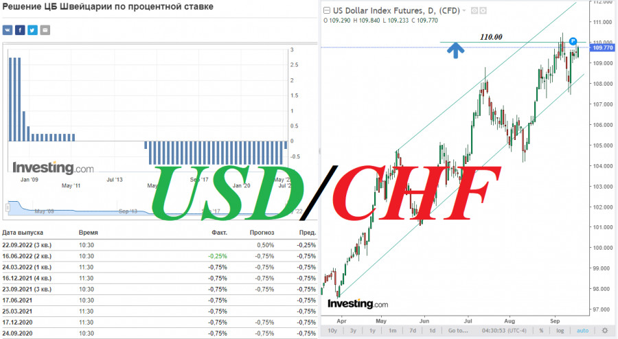 USD/CHF: накануне заседаний ФРС и НБШИнстаФорекс - Instaforex, 3 года назад В преддверии заседания ФРС, которое начнется уже завтра, доллар укрепляется. Закрыв предыдущую неделю на позитивной территории, индекс доллара DXY вновь вырос с открытия сегодняшнего торгового дня. На момент публикации данной статьи фьючерсы на индекс доллара DXY находятся вблизи отметки 109.77, на 127 пунктов выше цены открытия минувшей недели и на 48 пунктов выше цены открытия сегодняшнего торгового дня. Покупатели доллара сохраняют оптимизм, а DXY - позитивную динамику, в ожидании очередных жестких мер со стороны руководителей ФРС по сдерживанию роста инфляции в США. Как сообщило в минувший вторник Бюро трудовой статистики США, в августе инфляция выросла выше ожиданий. Индекс потребительских цен (CPI) вышел со значением +8,3% (в годовом исчислении) против прогноза +8,1% и +8,5% в предыдущем месяце (в месячном выражении инфляция выросла на +0,1% с 0% в июле, что оказалось выше ожиданий о снижении на -0,1%). Из отчета следует, что инфляция вновь начала набирать обороты. Это, в свою очередь, делает повышение ставки на 75 базисных пунктов на сентябрьском заседании FOMC теперь «практически гарантированным», говорят экономисты. Более того, значительная часть экономистов и участников рынка ставят на то, что ФРС повысит процентную ставку сразу на 100 базисных пунктов. Несмотря на то, что другие крупнейшие мировые центральные банки также проводят цикл ужесточения своих монетарных политик, решения ФРС по процентным ставкам оказывают на рынок наибольшее влияние. И более жёсткая монетарная политика ФРС по сравнению с другими крупнейшими мировыми центральными банками делает доллар более перспективным инструментом для долгосрочного инвестирования в него со стороны стратегических инвесторов, для которых важнее, пусть и относительно невысокий, но гарантированный доход. Решение ФРС по процентной ставке будет опубликовано вечером в среду (подробнее см. в Важнейшие экономические события недели 19.09.2022 – 25.09.2022). На этой же неделе, помимо ФРС, еще 4 крупнейших мировых центральных банка (Китая, Японии, Швейцарии, Великобритании) также проведут свои заседания, посвящённые вопросам монетарной политики. В частности, в четверг (в 07:30 GMT) будет опубликовано решение НБ Швейцарии по процентной ставке. В ходе июньского заседания Швейцарский национальный банк неожиданно повысил процентную ставку по депозитам до -0,25%, удивив инвесторов и экономистов, ожидавших, что процентная ставка останется на прежнем уровне -0,75%. После решения Швейцарского национального банка повысить учетную ставку на 50 базисных пунктов, его глава Томас Джордан отметил, что швейцарский франк больше не является сильно переоцененным из-за недавнего снижения. В сопутствующем заявлении НБШ также говорилось, что «более жесткая денежно-кредитная политика направлена на предотвращение более широкого распространения инфляции в Швейцарии». При этом, банк оставляет за собой право «вмешиваться в рынки, чтобы остановить чрезмерное укрепление или ослабление швейцарского франка». Еще на прошлой неделе ожидалось, что руководители НБШ сохранят текущую ставку по депозитам на уровне -0,25%. Теперь предполагается, что основная процентная ставка будет вновь повышена, причём сразу на 0,75%, до 0,5%. Вероятно, этот шаг со стороны НБШ, а также традиционный статус 