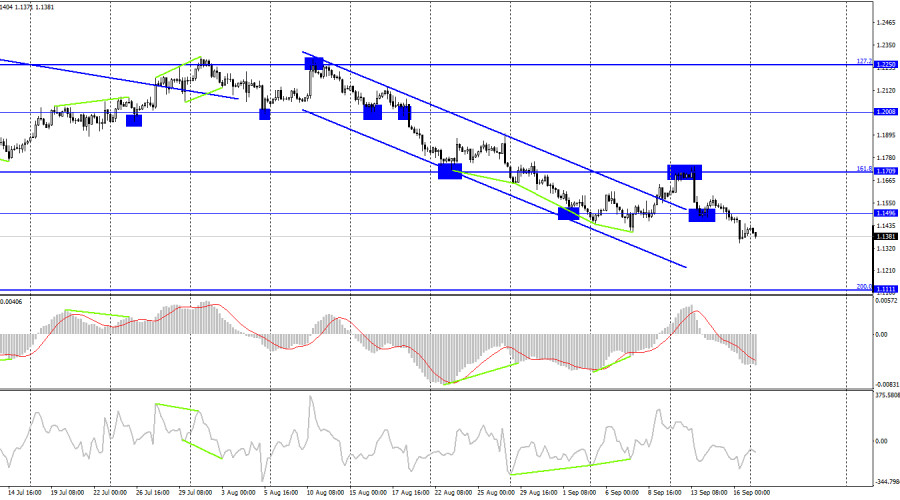 Добрый день, уважаемые трейдеры! На часовом графике пара GBP/USD продолжала процесс падения, который начался еще в прошлый вторник. К концу недели пара упала ниже своего предыдущего лоу, который являлся минимальным значением за последние почти 40 лет. Однако, как мы видим, британец даже не собирается останавливаться на достигнутом, а медведи продолжают с большим рвением избавляться от этой валюты. Ближайшей целью является коррекционный уровень 423,6% - 1,1306. У меня нет сомнений, что и эта отметка покорится медведям. Прошлая неделя была довольно интересной в плане информационного фона. Чего только стоят отчеты по инфляции в США и Великобритании. В обоих случаях индекс потребительских цен снижался, но в обоих случаях это привело к падению фунта и росту доллара. Похоже, что трейдеры сейчас не рассматривают других вариантов, кроме продаж британца. Тем интереснее, потому что уже на этой неделе состоятся заседания FOMС и Банка Англии, и в обоих случаях ожидается повышение ставки. Если с ФРС все понятно - ставка будет поднята на 0,75%, то в случае с Банком Англии все более запутанно. Инфляция в Великобритании начала замедляться позже американской, но и Банк Англии поднимал ставку медленнее. Я не сомневаюсь, что ставка британского регулятора вырастет на 0,50% минимум, но поможет ли это британцу? Возможно, в краткосрочном периоде да, но в более длительном вряд ли. Трейдеры продолжают считать, что британские экономические проблемы куда более масштабные и опасные, чем американские. И понимание этого толкает фунт вниз, а доллар вверх. В этом случае доллар еще долгое время может продолжать рост. Ведь ФРС не собирается останавливаться на достигнутом и собирается продолжать ужесточать денежно-кредитную политику. До целевых 2% по инфляции еще очень далеко, и если трейдеры распродавали фунт на основании этого фактора, то почему им вдруг перестать это делать? Только за последние полгода фунт подешевел на 2200 пипсов. Вопросов по настроению трейдеров нет никаких. На 4-часовом графике пара выполнила закрепление под уровнем 1,1496, что позволяет трейдерам рассчитывать на падение вплоть до уровня Фибо 200,0% - 1,1111. Назревающих дивергенций сегодня не наблюдается ни у одного индикатора, но любая «бычья» дивергенция на таком сильном тренде – это максимум откат вверх на 100-150 пипсов. А «медвежьи» дивергенции на падении не образовываются. Отчет Commitments of Traders (COT):
