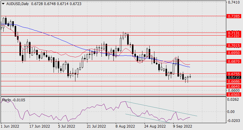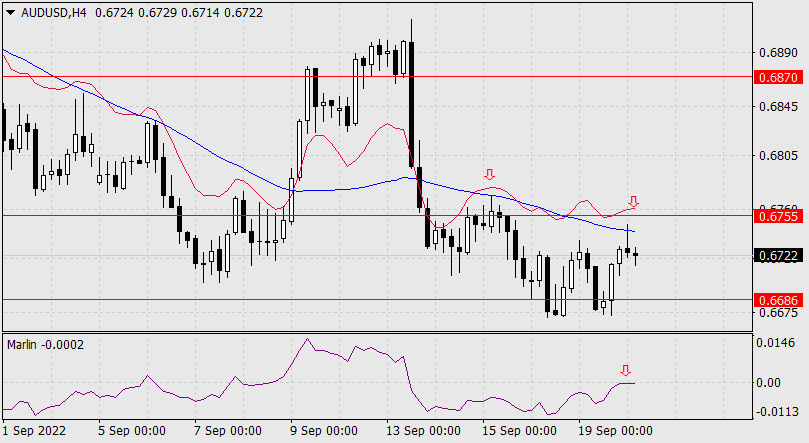 Прогноз по AUD/USD на 20 сентября 2022 годаИнстаФорекс - Instaforex, 3 года назад Вчера цена австралийского доллара нижней тенью дневной свечи отработала поддержку 0.6686, но устойчивость общего рынка в процессе ожидания решения ФРС по монетарной политике в среду удержало цену в диапазоне накопления 1.6686-0.6755. На текущий момент цена снижается, так как общее ожидание рынка в повышении ставки на 0,75%. С преодолением поддержки 0.6686 откроется цель 0.6640, ещё ниже находится целевой уровень 0.6565. Осциллятор Марлин снижается в собственном нисходящем канале.