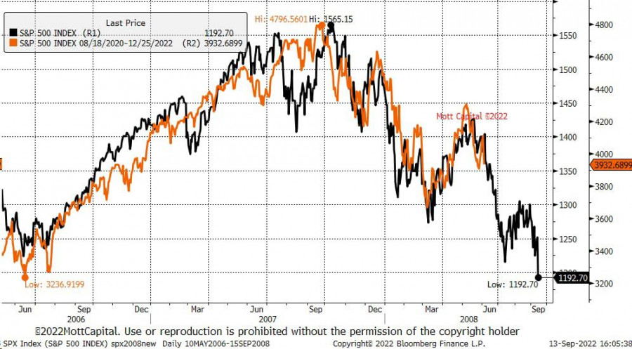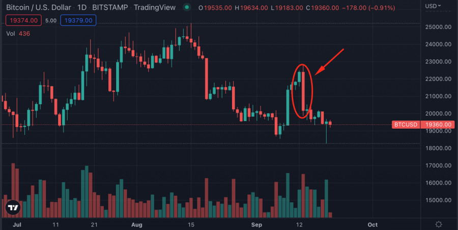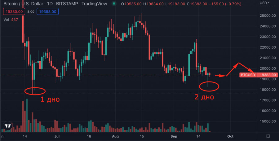 Биткоин готовится обновить локальный минимум в преддверии заседания ФРСИнстаФорекс - Instaforex, 3 года назад Биткоин вновь торгуется ниже $20k и рискует окончательно потерять поддержку покупателей. Это грозит обновлением локального минимума или формированием нового дна рынка. Фундаментальные и технические факторы указывают на высокую вероятность реализации медвежьего сценария. ФРС теряет контроль над инфляцией?Главным фактором падения капитализации Биткоина является инфляция в Соединенных Штатах. В августе казалось, что ФРС выработали достаточно действенный механизм по противодействию росту потребительских цен. Согласно последнему отчету CPI, уровень инфляции упал до 8,3% при прогнозе 8,1%. Неутешительная динамика снижения ИПЦ стала тревожным сигналом, указывающим на потерю контроля Центробанка США над инфляцией. Общий прогноз по BTC/USDВ краткосрочной перспективе это означает сохранение ястребиной политики ФРС, агрессивное изъятие ликвидности и повышение ключевой ставки. После публикации CPI у рынков не осталось сомнений, что key rate повысят минимум на 75 базисных пунктов. Именно по этой причине инвесторы стремительно избавляются от высокорисковых активов, в том числе Биткоина. В среднесрочной и краткосрочной перспективе ситуация также существенно ухудшается. В июле Пауэлл заявлял, что ведомство планирует оставить ставку на нейтральном уровне к завершению 2022 года. Это давало инвесторам надежду на завершение агрессивной монетарной политики в ближайшее время. Приближение выборов в Конгресс США в ноябре подогревало позитив рынков и позволяло надеяться на ослабление текущей политики ФРС. По состоянию на конец сентября рынкам стоит поубавить надежды на быстрое разрешение ситуации, так как инфляция падает медленнее самых скромных прогнозов. ФРС находится в затруднительном положении, так как с одной стороны инфляция становится неуправляемой, а с другой экономика США входит в фазу затяжной рецессии. Корреляция Bitcoin с SPX и DXYСовокупность этих факторов позволяет сделать неутешительные выводы для крипторынка и Биткоина. Ключевая ставка продолжит расти, а кризис ликвидности усугубляться. Это означает, что BTC продолжит сохранять корреляцию с фондовыми индексами. Индекс доллара США удерживает звание основного финансового инструмента на ближайшие месяцы. Следовательно, Bitcoin будет расти лишь в случае локальной коррекции DXY. Хочется остановиться подробнее на ситуации с фондовым рынком, который имеет прямое влияние на котировки Биткоина. Аналитики утверждают, что движение цены S&P 500 полностью повторяет события мирового кризиса 2008 года. И учитывая, где находилось дно индекса во время кризиса конце нулевых, SPX ожидает очередной и очень болезненный этап снижения. Технический анализ BTC/USDВ краткосрочной перспективе есть два варианта движения цены Биткоина. Завтра, 21 сентября, состоится заседание ФРС и выступление Пауэлла, где ожидается повышение ключевой ставки на 75 б.п. Вероятней всего, рынок отреагирует спокойно, так как текущее снижение цены – подготовка к неутешительным решениям ЦБ. Однако вполне вероятно, что ставку повысят на 100 базисных пунктов. В таком случае Биткоин начнет снижаться и достигнет локального дна на отметке $17,7k. Учитывая общую нисходящую направленность рынков, вероятность обновления минимума цены BTC находится н