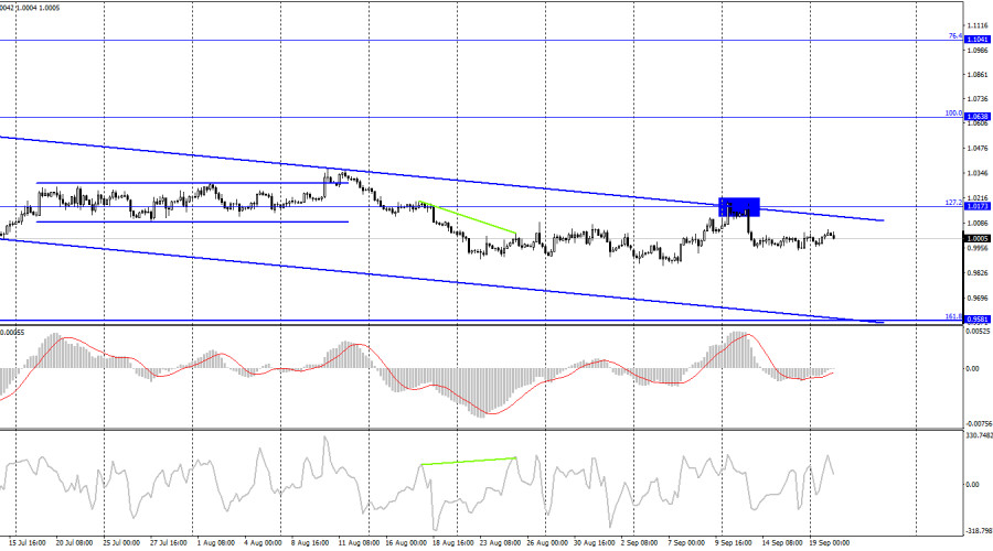 EUR/USD. 20 сентября. Затишье перед бурейИнстаФорекс - Instaforex, 3 года назад Добрый день, уважаемые трейдеры! Пара EUR/USD в понедельник выполнила пятый подряд отбой от уровня коррекции 323,6% - 0,9963, разворот в пользу европейской валюты и небольшой рост в направлении уровня 1,0080. Как я и говорил вчера, рост не получился сильным, всего около 80 пипсов. Сегодня, во вторник, уже выполнен разворот и, похоже, что котировки пары очень быстро вернутся к уровню 0,9963, чтобы протестировать его в шестой раз. Как и раньше, отбой позволит ожидать рост на 70-80 пипсов, а закрепление под – падение в направлении уровня 0,9782. Помимо отсутствия движений в понедельник и вторник, отсутствует также и информационный фон. Первым и единственным событием этих двух дней станет выступление Кристин Лагард сегодня поздно вечером. Таким образом, оно все равно не повлияет на настроение трейдеров в течение дня. Однако хотел бы отметить, что трендовое движение может возобновится в любой момент, так как уже завтра трейдеры будут ознакомлены с результатами заседания ФРС, а это событие является таким же важным, как отчет по инфляции, и даже важнее. Напомню, что большинство экспертов сходится во мнении, что ставка вырастет на 0,75%. Я бы сказал, что это повышение уже учтено в текущем курсе пары евро/доллар и других инструментах. Тем не менее, нельзя полностью исключать повышения на 1,00%, нельзя забывать про пресс-конференцию с Джеромом Пауэллом, который может сообщить много интересной информации, на которую трейдеры не могут не ответить. Доллар имеет отличный повод расти до тех пор, пока ФРС повышает процентную ставку. Таким образом, его судьба находится в руках FOMC, а любые намеки на сроки продолжения ужесточения денежно-кредитной политики помогут трейдерам понять, сколько еще времени может расти американская валюта. Также имеет значение, до какого уровня в конечном итоге ставка поднимется. Сейчас средневзвешенный прогноз – 4%, однако я думаю, что ставка может подняться и гораздо выше, раз уж ФРС так серьезно взялась за цель опустить инфляцию до 2%. На 4-часовом графике пара выполнила отбой от уровня коррекции 127,2% - 1,0173, разворот в пользу валюты США и начала падение в направлении коррекционного уровня 161,8% - 0,9581. Нисходящий трендовый коридор продолжает характеризовать настроение трейдеров, как «медвежье». Закрытие курса пары над коридором может изменить настроение трейдеров на «бычье» на долгое время, но очередная попытка закончилась провалом. Отчет Commitments of Traders (COT):