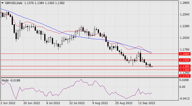Прогноз по GBP/USD на 21 сентября 2022 годаИнстаФорекс - Instaforex, 3 года назад Вчерашнее снижение фунта составило 51 пункт. Цена преодолела уровень поддержки 1.1385. Сегодня ФРС повышает ставку на 0,75%, поэтому падение британской валюты может усилиться. Ближайшими целевыми уровнями выступают: 1.1305, 1.1170. От уровня 1.1170 вероятна коррекция, так как следующая цель очень низкая – 1.0830.