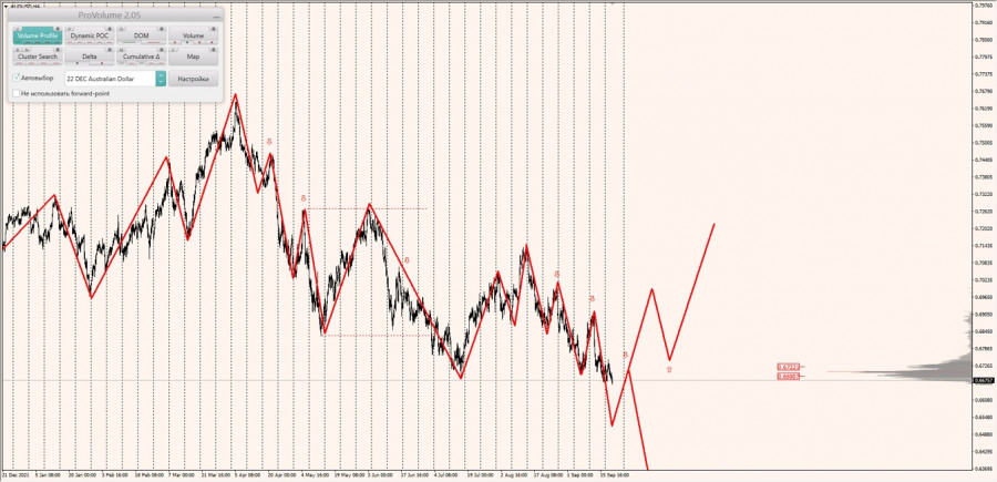 Долгосрочная тенденция: в шорт. Максимальное скопление объемов текущего контракта расположено в диапазоне по котировкам 0.66907-0.67221. В настоящий момент по паре совершаются инвестиционные операции ниже, указывая на силу продавцов.