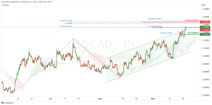 USD/CAD: сохраняется потенциал для дальнейшего роста. Прогноз на 21 сентября 2022ИнстаФорекс - Instaforex, 3 года назад На 4-часовом графике пара USD/CAD вырвалась из восходящего канала и протестировала предыдущее ключевое сопротивление на уровне 1.33640, соответствующем уровню расширения Фибоначчи 127.2% и проекции Фибоначчи 161.8%. Если цена сможет успешно пробить этот уровень, пара может укрепиться до 1-го уровня сопротивления 1.34343, который соответствует проекции Фибоначчи 100%, а также уровням расширения Фибоначчи 127.2% и 141.4%. В качестве альтернативы цена может откатиться от ключевого уровня сопротивления и упасть к 1-му уровню поддержки 1.32777, который соответствует уровню коррекции Фибоначчи 23.6%. Торговая рекомендация Вход: 1.33640 Условия для входа: уровень расширения Фибоначчи 127.2% и проекция Фибоначчи 161.8% Тейк-профит: 1.34343 Условия для фиксации прибыли: 100% проекция Фибоначчи, 127.2% уровень расширения Фибоначчи и 141.4% уровень расширения Фибоначчи Стоп-лосс: 1.32777 Условия для активации ордера стоп-лосс: Материал предоставлен компанией InstaForex - www.instaforex.com |