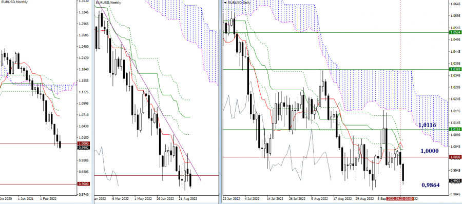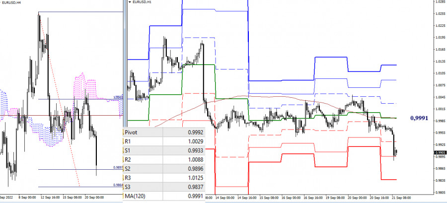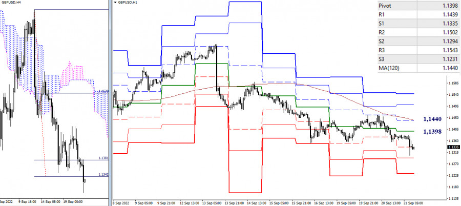 EUR/USD и GBP/USD 21 сентября – рекомендации технического анализаИнстаФорекс - Instaforex, 3 года назад EUR/USD Старшие таймфреймы Вчера инициатива была на стороне игроков на понижение. Сегодня развитие снижения пока сохраняет приоритет. Основные задачи для успешного усиления медвежьих настроений сейчас заключаются в преодолении притяжения психологического уровня 1,0000 и надёжном закреплении ниже минимального экстремума (0,9864). Выполнение задач позволит восстановить нисходящий тренд старших таймов и рассмотреть новые перспективы. Н4 – Н1 В настоящий момент основное преимущество младших таймов на стороне игроков на понижение. Медведи протестировали поддержку S2 (0,9896) и первый целевой ориентир цели на пробой облака Ишимоку Н4 (0,9897). Далее ориентирами для продолжения снижения сегодня можно назвать минимальный экстремум (0,9864), цель Н4 (0,9864) и заключительную поддержку классических Пивот-уровней (0,9837). Ключевые уровни младших временных интервалов сегодня являются сопротивлениями и объединяют свои усилия на рубеже 0,9991 (недельная долгосрочная тенденция + центральный Пивот-уровень дня). *** GBP/USD Старшие таймфреймы Игрокам на понижение вчера всё-таки удалось закрыться ниже 1,1411 (минимальный экстремум 2020 года). Данный уровень пока сохраняет влияние и притяжение. Сегодня снижение продолжается. Надёжное восстановление и развитие нисходящего тренда позволит рассмотреть в качестве нового значимого ориентира район психологической поддержки 1,0000. Н4 – Н1 Игроки на понижение, завершив очередную восходящую коррекцию, пытаются уйти за пределы цели на пробой облака Н4 (1,1342). Ориентирами для дальнейшего снижения внутри дня сейчас служат поддержки классических Пивот-уровней (1,1294 – 1,1231). Ключевые уровни сегодня формируют сопротивления на рубежах 1,1398 (центральный Пивот-уровень) и 1,1440 (недельная долгосрочная тенденция). Их пробой и закрепление выше способны изменить действующий баланс сил. *** При техническом анализе ситуации используются: старшие таймфреймы – Ichimoku Kinko Hyo (9.26.52) + уровни Фибо Киджун Н1 – Pivot Points (классические) + Moving Avarage 120 (недельная долгосрочная тенденция) Материал предоставлен компанией InstaForex - www.instaforex.com |