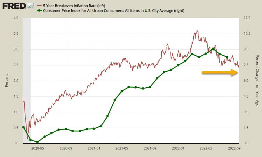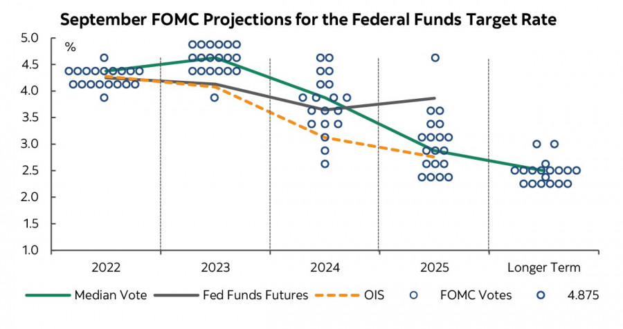 Доллар США на вершине финансовой пирамиды. Обзор валютного рынкаИнстаФорекс - Instaforex, 3 года назад Как и ожидалось, FOMC повысил верхний предел ставки по федеральным фондам на 0.75%, до 3,25%. Глава ФРС Пауэлл на итоговой пресс-конференции попытался принизить значимость любого упоминания о возможном повышении ставки на 100п., сославшись на неопределенность в отношении колебаний уровня инфляции в последние месяцы. От отметил, что «мы получили удивительно низкие показатели инфляции в июле и удивительно высокие показатели в августе. Мы не хотим слишком остро реагировать». Ожидаемое решение не вызвало бы довольно бурную реакцию рынка, если бы не сюрприз, который появился в точечном графике. FOMС прогнозирует ставку 4,25% на конец 2022 г., это на 100п. выше, чем в июне, но один из членов FOMC видит ставку на конец года на уровне 4.5%, а вот далее еще любопытнее – часть участников видит ставку в размере 5% в 1 квартале 2023. Это значительно выше, чем озвучивалось хоть кем-то из членов Комитета ранее. Когда Пауэллу был задан вопрос о том, почему ускоряются темпы повышения ставки, он был вынужден признать, что Комитет не видит снижения инфляции, она выше ожиданий, 3-,6- и 12-месячные средние по базовой инфляции выше прогнозов, а потому необходимо больше решительности. Проще говоря, ФРС напуган данными по инфляции за август, и тем, что сглаженный тренд по инфляции более устойчив, чем хотелось бы. К такому выводу подталкивает и оговорка Пауэлла о том, что если они не проявят решительность сейчас, то может сложиться ситуация потери контроля над инфляционными процессами. Ключ для понимания заключается в следующей фразе: «Мы хотим, чтобы реальные ставки были положительными по всей кривой доходности». Да, пока ситуация с реальными ставками далека от оптимизма. Несмотря на то что решительные действия ряда центробанков на этой неделе и ранее привели к некоторому росту реальной доходности, она все еще глубоко отрицательная, что хорошо видно на простом графике доходностей 10-летних облигаций за вычетом инфляции. Можно сказать, что картина глобальной инфляции в сравнении с июнем стала не лучше, а даже хуже. Итак, FOMC явно дает понять, что готовится к более затяжному периоду высокой инфляции, чем рассчитывал совсем недавно. Замедление по темпам роста ставки возможно лишь при соблюдении нескольких условий, по которым пока нет никакой ясности, а именно – замедление роста экономики, устойчивый уровень безработицы вблизи 4,5% и охлаждение потребительского спроса, а главное – доказательства того, что инфляция что инфляция возвращается к 2%, что может произойти примерно к 2025 г. Последний пункт также вызывает вполне очевидные вопросы. Как следует из динамики доходностей защищенных от инфляции 5-летних облигаций Tips, бизнес видит инфляцию в перспективе 5 лет выше 2,5%. Да, откат от пика 3,6% в апреле есть, но цель все еще заметно выше таргета, а значит, нужны дополнительные шаги, чтобы инфляционные ожидания пришли туда, где их хочет видеть ФРС. Комитет Конгресса по бюджету выпустил обширное исследование, в котором отмечает, что более высокие процентные ставки приведут к более высоким процентным расходам, уплачиваемым Казначейством, а замедление экономического роста приведет к меньшим налоговым сборам. В любом случае роста дефицита бюджета не избежать. Отчет Казначейства США по движению инос