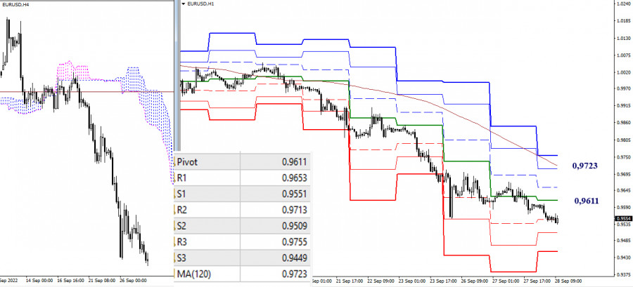 EUR/USD и GBP/USD 28 сентября – рекомендации технического анализаИнстаФорекс - Instaforex, 3 года назад EUR/USD Старшие таймфреймы Игроки на понижение близки к тому, чтобы покинуть зону коррекции и продолжить снижение. Ближайший ориентир для нисходящего тренда сегодня по-прежнему можно отметить на рубеже психологического уровня 0,9000. В случае возврата на рынок игроков на повышение и развития восходящей коррекции, первыми на старших таймфреймах в работу вступят сопротивления дневного мёртвого креста Ишимоку. Они расположены сегодня на 0,9798 (краткосрочный тренд) и 0,9871 (среднесрочный тренд). Н4 – Н1 В настоящий момент на младших временных интервалах тестируется первая поддержка классических Пивот-уровней 0,9551. Пробой и продолжение снижения скорей всего подключат к работе оставшиеся две поддержки S2 (0,9509) и S3 (0,9449). При развитии коррекции ключевыми ориентирами на младших таймах сегодня являются 0,9611 (центральный Пивот-уровень дня) и 0,9723 (недельная долгосрочная тенденция). Пробой и закрепление выше изменит действующий баланс сил. Ситуацию в этом случае лучше будет оценить заново. *** GBP/USD Старшие таймфреймы Из-за длинной нижней тени, сформированной накануне, игроки на понижение вынуждены взять паузу. В результате пока наблюдается торможение и неопределённость. В ожидании новых движений ориентиры сохраняют сегодня своё расположение. Для медведей значение имеет обновление минимума (1,0355) и тестирование психологической поддержки 1,0000. Внимание быков в свою очередь направлено на ближайшие рубежи, которые вступят в работу при развитии коррекции. Это уровни дневного креста 1,0917 (краткосрочный тренд) и 1,1128 (среднесрочный тренд). Н4 – Н1 На младших таймфреймах пара работает в зоне коррекции, основное притяжение и влияние сейчас оказывает центральный Пивот-уровень (1,0739). Дополнительные поддержки внутри дня сегодня можно отметить на 1,0555 и 1,0458 (классические Пивот-уровни). Сопротивлениями в сложившейся ситуации служат 1,0826 – 1,0923 – 1,1010 (классические Пивот-уровни) и 1,0966 (недельная долгосрочная тенденция). *** При техническом анализе ситуации используются: старшие таймфреймы – Ichimoku Kinko Hyo (9.26.52) + уровни Фибо Киджун Н1 – Pivot Points (классические) + Moving Avarage 120 (недельная долгосрочная тенденция) Материал предоставлен компанией InstaForex - www.instaforex.com |