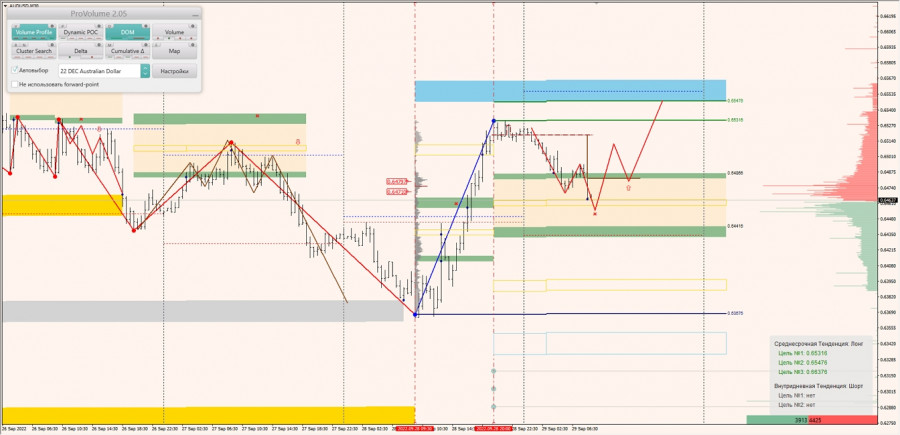 Среднесрочная тенденция: в лонг. Максимальное скопление объемов среднесрочной тенденции расположено в диапазоне по котировкам 0.64710-0.64797. В настоящий момент по паре совершаются инвестиционные операции ниже, указывая на слабость покупателей.
