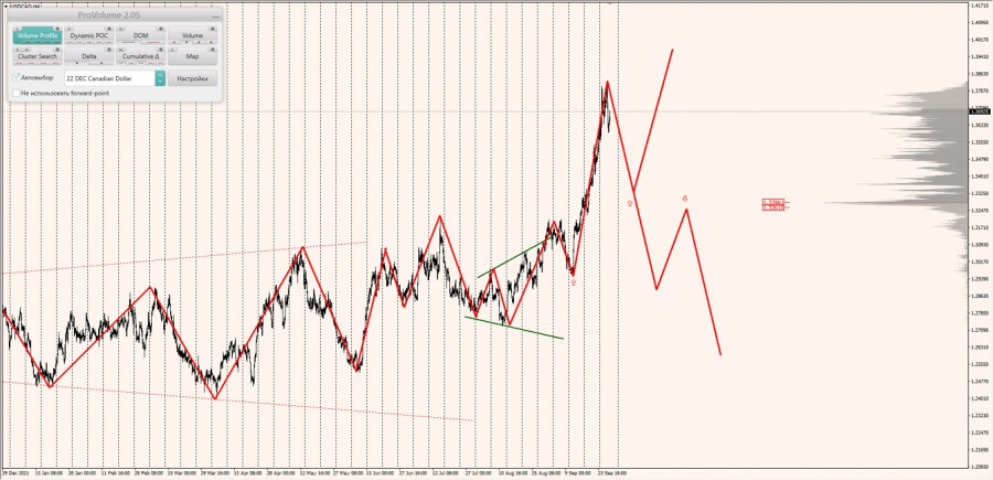 Среднесрочная тенденция: в шорт. Максимальное скопление объемов среднесрочной тенденции расположено в диапазоне по котировкам 1.36815-1.36943. В настоящий момент по паре совершаются инвестиционные операции внутри указанного диапазона, указывая на временную неопределенность.