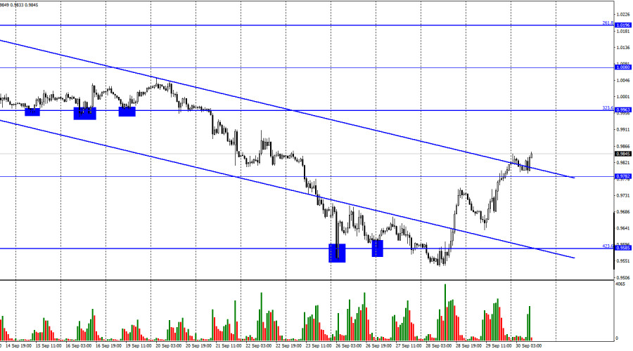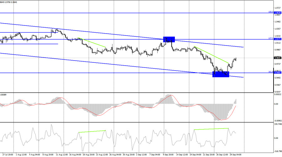 EUR/USD. 30 сентября. Перелом на валютном рынкеИнстаФорекс - Instaforex, 3 года назад Добрый день, уважаемые трейдеры! Пара EUR/USD в четверг выполнила новый разворот в пользу европейской валюты и закрепление над уровнем 0,9782. Сегодня было выполнено закрытие над нисходящим трендовым коридором, что значительно увеличивает шансы пары на дальнейший рост в направлении коррекционного уровня 323,6% - 0,9963. Европейская валюта долго ждала этого момента. Напомню, что в 2022 году евро и многие другие валюты мира падали практически без остановки. Такая картина на валютном рынке сложилась сразу из-за целой череды факторов, среди которых есть и украино-российский конфликт, и санкции Запада против России, и высокая инфляция, и угроза рецессии во многих экономиках, и более быстрое и сильное повышение ставки ФРС. Однако рано или поздно все заканчивается. Трейдеры-быки на этой неделе показали, что они наконец-то готовы перехватить инициативу у медведей и начать свой тренд. С моей точки зрения, связывать это событие с какими-либо новостями не имеет смысла. На этой неделе практически не было важных экономических отчетов, поэтому эта статья влияния отпадает сразу. Было несколько выступлений Кристин Лагард, выступление Джерома Пауэлла, некоторых членов FOMC. Однако все они говорили одно и тоже: ставка будет продолжать расти, инфляция, если и замедляется, то делает это слишком медленно, экономический рост будет замедляться. И такая риторика чиновников из США и Евросоюза уже пару месяцев не меняется. Таким образом, я не могу сказать, что именно на этой неделе трейдеры рассмотрели нечто оптимистичное в заявлениях Лагард или усомнились в том, что ФРС и дальше будет повышать ставку большими шагами. В противном случае, на все выступления чиновников можно вообще не обращать внимания, если рынок их трактует, как захочет. Графический же анализ нельзя трактовать, как захочется. В данное время он четко сигнализирует о смене настроения на рынке. Безусловно, многое еще следует пройти евровалюте, чтобы ее рост не закончился уже на следующей неделе, однако шансы на рост есть. На 4-часовом графике пара выполнила новый разворот в пользу доллара США после образования «медвежьей» дивергенции у индикатора CCI, но падение выдалось слабым. Процесс роста продолжается в направлении верхней линии нисходящего трендового коридора, таким образом настроение на 4-часовом графике пока «медвежье». Шансы евро на дальнейший рост возрастут, если пара выполнит закрепление над коридором. Отчет Commitments of Traders (COT):